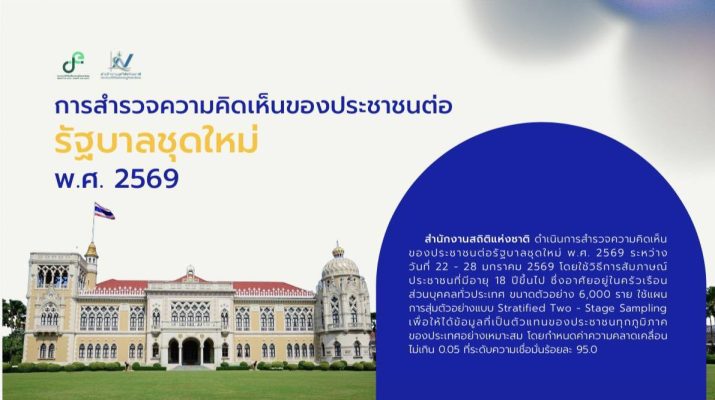 สำนักงานสถิติแห่งชาติ เปิดเผยผลการสำรวจความคิดเห็นของประชาชนต่อรัฐบาลชุดใหม่ พ.ศ. 2569 พบว่า “ค่าครองชีพสูง” เป็นประเด็นที่ประชาชนมีความกังวลมากที่สุด สะท้อนความท้าทายด้านเศรษฐกิจและคุณภาพชีวิตที่ประชาชนเผชิญอยู่ในปัจจุบัน ดร.เอกพงษ์ หริ่มเจริญ ผู้อำนวยการสำนักงานสถิติแห่งชาติ กล่าวว่า “สำนักงานสถิติแห่งชาติ ดำเนินการสำรวจความคิดเห็นของประชาชนต่อรัฐบาลชุดใหม่ พ.ศ. 2569 ระหว่างวันที่ 22 – 28 มกราคม 2569” สรุปผลที่น่าสนใจได้ดังนี้ ค่าครองชีพ–รายได้–หนี้สิน