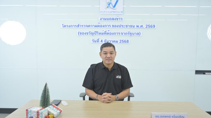 สำนักงานสถิติแห่งชาติ ดำเนินการสำรวจความต้องการของประชาชน พ.ศ. 2569 ของขวัญปีใหม่ที่ต้องการจากรัฐบาล ความพึงพอใจ ความเชื่อมัน ต่อรัฐบาล และ รูปแบบการหลอกลวงออนไลน์/โทรศัพท์ที่ประชาชนทราบ/รับรู้ข่าวสาร ระหว่าง วันที่ 18 – 23 พฤศจิกายน 2568” ดร.เอกพงษ์ หริ่มเจริญ ผู้อำนวยการสำนักงานสถิติแห่งชาติ เปิดเผยว่า “สำนักงานสถิติแห่งชาติ ดำเนินการสำรวจความต้องการของประชาชน พ.ศ.