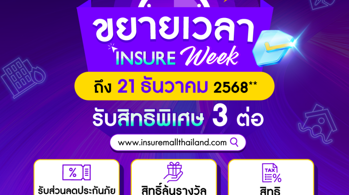 สำนักงาน คปภ. ขยายเวลา “Insure Week”ถึง 21ธันวาคม 2568มอบสิทธิพิเศษ 3ต่อ สำหรับสมาชิก Insure Mall Thailand