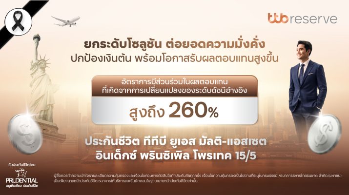 ทีทีบี จับมือ พรูเด็นเชียล ประเทศไทย ยกระดับโซลูชันต่อยอดความมั่งคั่ง คุ้มครองเงินต้น พร้อมโอกาสรับผลตอบแทนสูงขึ้นกับ ประกันชีวิต “ทีทีบี ยูเอส มัลติ-แอสเซต อินเด็กซ์ พรินซิเพิล โพรเทค 15/5”