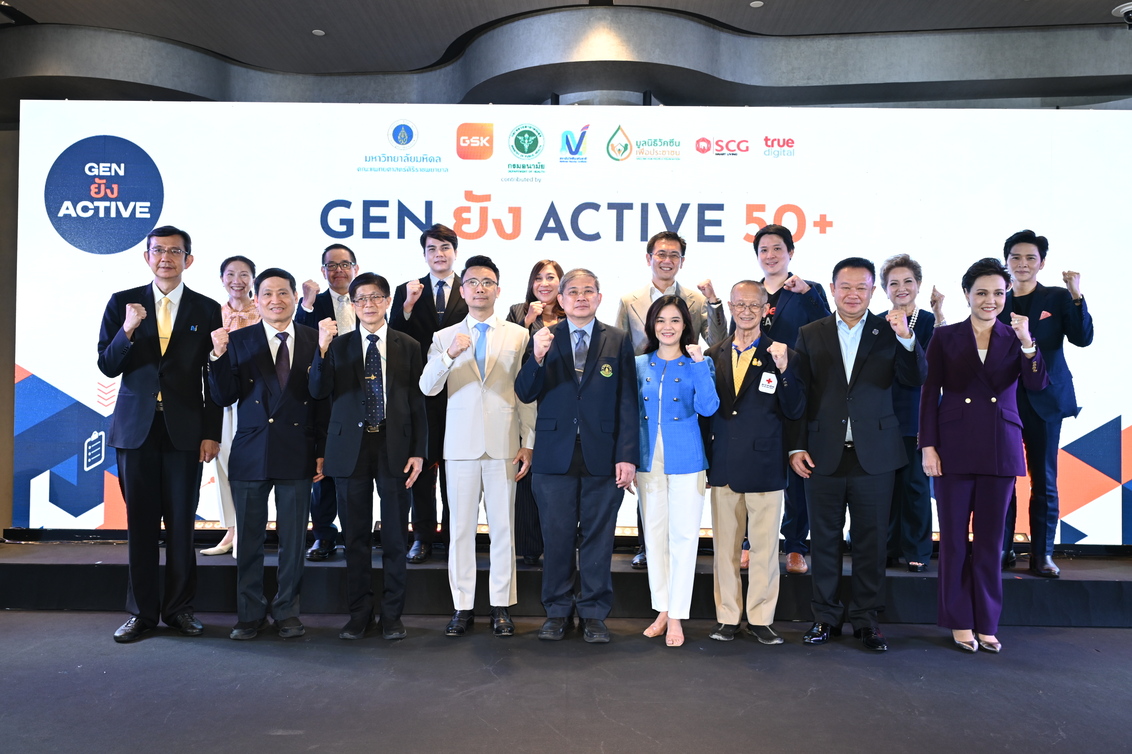 คณะแพทยศาสตร์ศิริราชพยาบาล มหาวิทยาลัยมหิดล ร่วมกับ บริษัท แกล็กโซสมิทไคล์น (ประเทศไทย) จำกัด (GSK) และพันธมิตรภาคีเครือข่ายภาครัฐและเอกชน ได้แก่ กรมอนามัย มูลนิธิวัคซีนเพื่อประชาชน สถาบันวัคซีนแห่งชาติ เอสซีจี และทรู ดิจิทัล กรุ๊ป ร่วมแถลงข่าวเปิดตัว โครงการส่งเสริมสุขภาพเชิงป้องกัน “Gen ยัง Active 50+” เพื่อเตรียมพร้อมให้คนไทยเข้าสู่สังคมผู้สูงวัยอย่างมีคุณภาพ พร้อมเปิดตัวเว็บไซต์ และ LINE OA : @GenYoungActive เพื่อเป็นช่องทางในการเข้าถึงข้อมูลด้านสุขภาพที่ถูกต้องและครบถ้วน