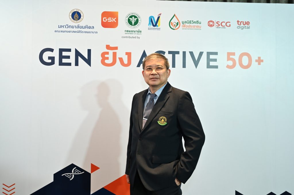 ศ. นพ.อภิชาติ อัศวมงคลกุล คณบดีคณะแพทยศาสตร์ศิริราชพยาบาล มหาวิทยาลัยมหิดล กล่าวว่า ในปีนี้ ประเทศไทยได้เข้าสู่สังคมผู้สูงวัยอย่างสมบูรณ์แล้ว โดยมีจำนวนประชากรที่มีอายุเกิน 60 ปี จำนวนกว่า 12 ล้านคน หรือประมาณ 20% ของประชากรทั้งหมด 66 ล้านคน การเตรียมความพร้อมอย่างเหมาะสมเพื่อรับมือกับผลกระทบที่เกิดขึ้นจากสังคมผู้สูงวัย รวมทั้งโอกาสเกิดโรคและภัยคุกคามทางสุขภาพต่าง ๆ ที่สูงขึ้น จึงเป็นเรื่องที่สำคัญและมีความจำเป็น โดยเฉพาะกลุ่ม 50+ ซึ่งเป็นกลุ่มที่ขับเคลื่อน productivity ของประเทศ และกำลังจะเข้าสู่สังคมผู้สูงวัย เพื่อสร้างเสริมสุขภาพกายและใจให้แข็งแรง และลดความเสี่ยงในด้านสุขภาพ ให้สามารถใช้ชีวิตได้อย่างมีคุณภาพและมีความสุขเมื่อเข้าสู่สังคมผู้สูงวัย ซึ่งโครงการ Gen ยัง Active 50+ จะเป็นโครงการสำคัญที่จะช่วยส่งเสริมให้ประเทศไทยเข้าสู่สังคมผู้สูงอายุอย่างยั่งยืน