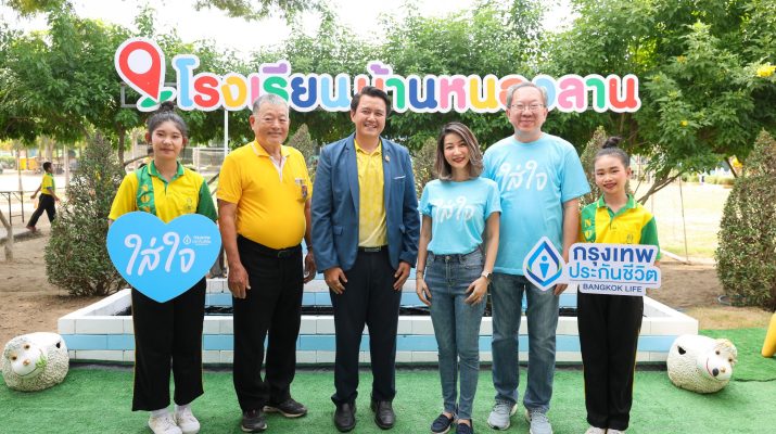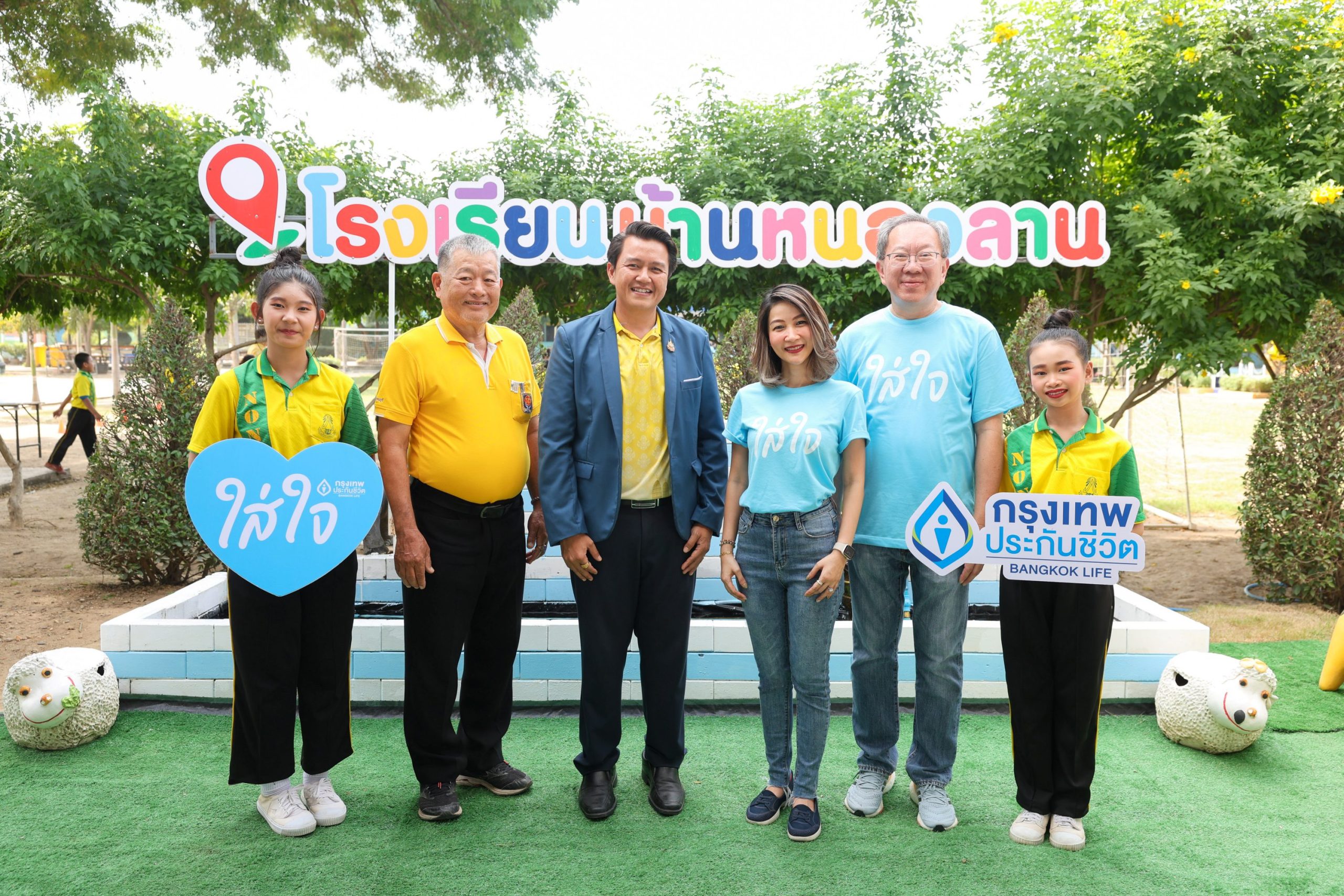 บริษัท กรุงเทพประกันชีวิต จำกัด (มหาชน) โดย นางสาวอรนาฎ นชะพงษ์ ผู้บริหารสายกลยุทธ์การตลาดและบริหารจัดการลูกค้า (ที่ 3 จากขวา) พร้อมด้วยคณะผู้บริหารและพนักงานจิตอาสา ร่วมโครงการ “ใส่ใจแบ่งปัน สานฝันเพื่อน้อง” โดยมีเป้าหมายในการร่วมทำความดีส่งท้ายปี 2567 ด้วยการเสริมสร้างคุณภาพชีวิตที่ดีให้กับเยาวชนและสังคมไทย ผ่านการสนับสนุนด้านการศึกษาและสุขภาพ ทั้งยังเสริมสร้างสภาพแวดล้อมการเรียนรู้ที่ปลอดภัยและมีคุณภาพมากยิ่งขึ้น โดยได้มอบระบบน้ำดื่มสะอาด เครื่องใช้ไฟฟ้าเพื่อการศึกษา และ กระเป๋าปฐมพยาบาลเพื่อสุขอนามัยที่สมบูรณ์ รวมถึง พื้นที่รักการอ่าน และพื้นที่การเรียนรู้ในรูปแบบสนามเด็กเล่น โดยมีนายกิตติศักดิ์ ศรีทอง ผู้อำนวยการโรงเรียน (ที่ 3 จากซ้าย) และคณะครูให้การต้อนรับ ณ โรงเรียนบ้านหนองลาน อำเภอท่ามะกา จังหวัดกาญจนบุรี เมื่อเร็ว ๆ นี้