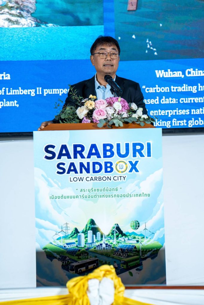 ดร. ชนะ กล่าวเพิ่มเติมว่า ปัจจุบันโครงการสระบุรีแซนด์บ็อกซ์มีความคืบหน้าอย่างมาก อย่างไรก็ตาม การมุ่งสู่การเป็นต้นแบบเมืองคาร์บอนต่ำให้สำเร็จนั้น ต้องใช้นวัตกรรมและรูปแบบการทำงานร่วมกันแบบบูรณาการจากหลายภาคส่วน รวมทั้งการสนับสนุนจากต่างประเทศ อาทิ สมาคมซีเมนต์คอนกรีตโลก (Global Cement and Concrete Association – GCCA), องค์การพัฒนาอุตสาหกรรมแห่งสหประชาชาติ (United Nations Industrial Development Organization-UNIDO), องค์กรความร่วมมือระหว่างประเทศของเยอรมัน (GIZ) มาร่วมสนับสนุนการดำเนินงาน โดยเฉพาะ เงินทุนสีเขียว (Green Funding) และ เทคโนโลยีสมัยใหม่ชั้นสูง เช่น เทคโนโลยีดักจับ ใช้ประโยชน์ และ กักเก็บ (Carbon Capture Utilization and Storage) เพื่อช่วยให้อุตสาหกกรมของประเทศเปลี่ยนผ่านสู่อุตสาหกรรมคาร์บอนต่ำตามเป้าหมายที่ตั้งไว้