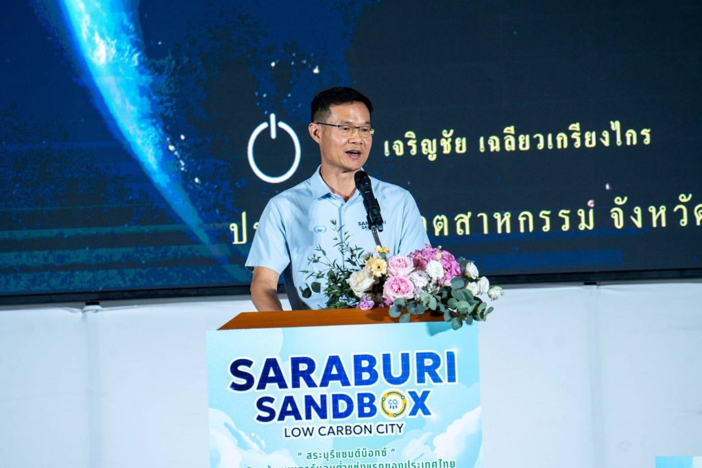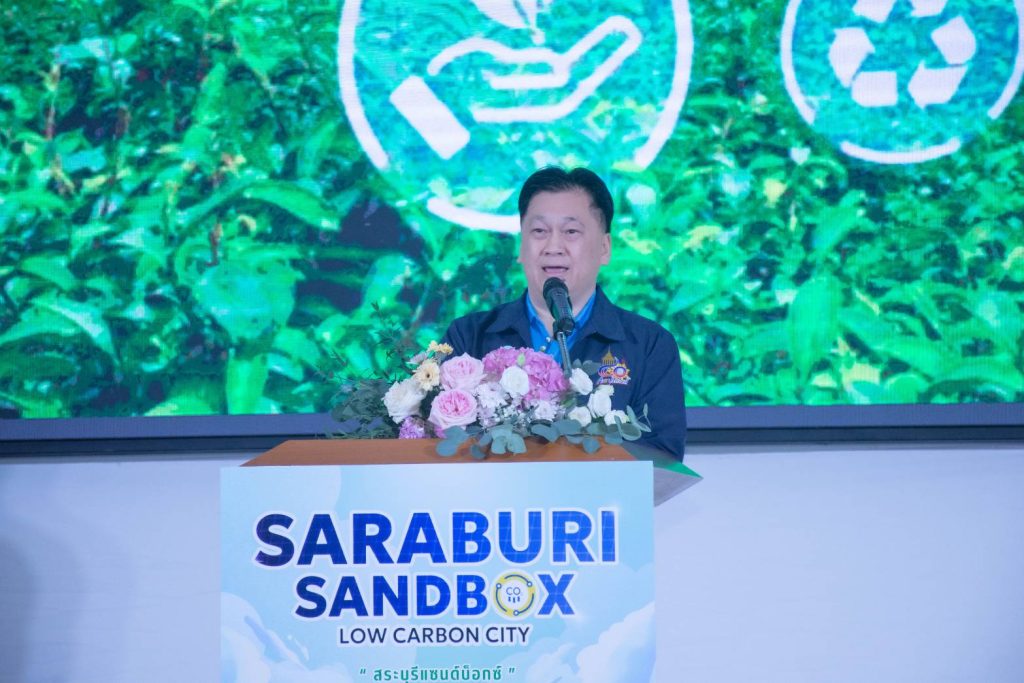 เอสซีจี ร่วมกับจังหวัดสระบุรี สมาคมอุตสาหกรรมปูนซีเมนต์ไทย สภาอุตสาหกรรมจังหวัดสระบุรี และ พันธมิตร ทั้งหน่วยงานภาครัฐ ภาคเอกชน ภาคประชาสังคม โชว์ความก้าวหน้า 1 ปี “สระบุรีแซนด์บ็อกซ์ รวมพลังสร้างเมืองคาร์บอนต่ำแห่งแรกของประเทศไทย” ณ โรงเรียนนายเรืออากาศนวมินทกษัตริยาธิราช อำเภอมวกเหล็ก จังหวัดสระบุรี ทั้งด้านการเปลี่ยนผ่านสู่พลังงานสะอาด การส่งเสริมอุตสาหกรรมสีเขียว การสร้างมูลค่าเพิ่มจากคาร์บอน ด้วยแรงหนุนจากภาคีพันธมิตร เชื่อมโยงความร่วมมือต่างประเทศด้านเทคโนโลยี และแหล่งทุนสีเขียว สู่เป้าหมายเมืองคาร์บอนต่ำ