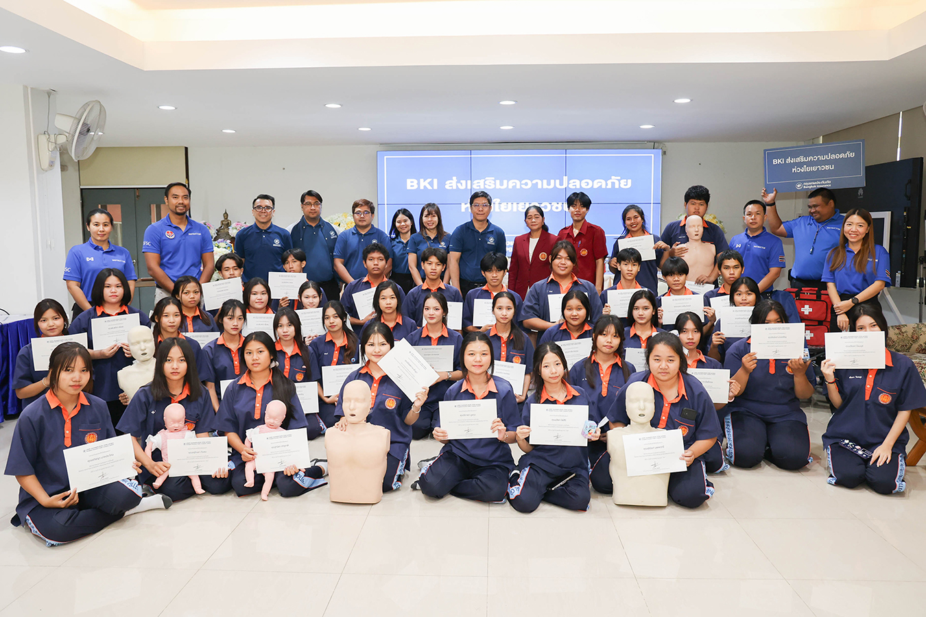โครงการ BKI ส่งเสริมความปลอดภัย ห่วงใยเยาวชน อบรมให้ความรู้ด้านการปฐมพยาบาลเบื้องต้นและสาธิตการปั๊มหัวใจ (CPR) ให้แก่นักเรียน เพื่อให้มีความรู้ขั้นพื้นฐานในการช่วยเหลือผู้ป่วยหรือผู้บาดเจ็บได้อย่างถูกต้องและทันท่วงทีในกรณีเกิดเหตุฉุกเฉิน พร้อมทั้งมอบรถเข็นวีลแชร์ ชุดกระเป๋าพยาบาลพร้อมเวชภัณฑ์ ชุดเฝือกสำเร็จรูปให้สถานศึกษา จำนวน 6 แห่ง ได้แก่