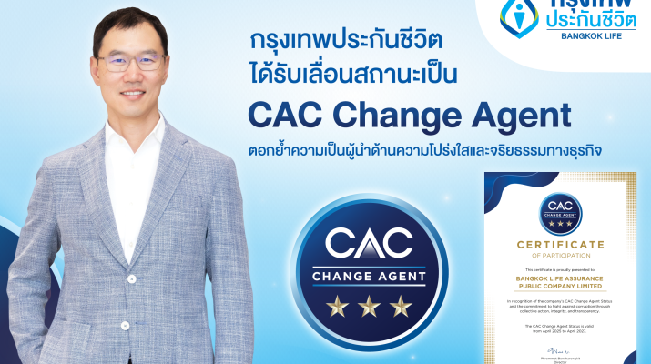 บริษัท กรุงเทพประกันชีวิต จำกัด (มหาชน) ก้าวสู่ผู้นำด้านความโปร่งใสและจริยธรรมทางธุรกิจ โดยได้รับการเลื่อนสถานะเป็น CAC Change Agent จากองค์กรแนวร่วมต่อต้านคอร์รัปชันของภาคเอกชนไทย (CAC) ซึ่งเป็นความสำเร็จที่น่าภาคภูมิใจ แสดงถึงความมุ่งมั่นในการดำเนินธุรกิจอย่างมีจริยธรรม โปร่งใส ปกป้องผู้มีส่วนได้ส่วนเสีย และเผยแพร่ไปยังคู่ค้าให้มีห่วงโซ่อุปทานที่ใสสะอาด