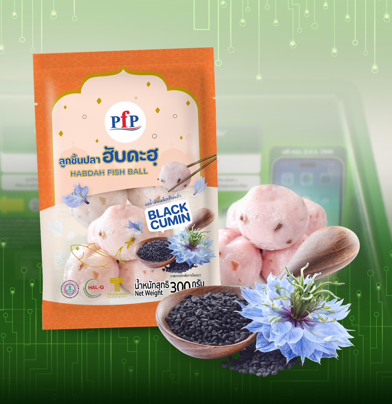 ผลิตภัณฑ์ “ลูกชิ้นปลา ฮับดะฮ.” ของพีเอฟพี เป็นผลิตภัณฑ์ต้นแบบที่ผสานคุณประโยชน์จากเนื้อปลาทะเลคุณภาพสูงเข้ากับ เมล็ดเทียนดำเมล็ดพันธุ์ดี ซึ่งเป็นวัตถุดิบที่ได้รับความนิยมในกลุ่มผู้บริโภคที่ใส่ใจสุขภาพ โดยเมล็ดเทียนดำอุดมไปด้วยสารต้านอนุมูลอิสระ กรดไขมันดี วิตามินบี ธาตุเหล็ก และคุณสมบัติทางชีวภาพที่มีส่วนช่วยในการเสริมภูมิคุ้มกัน ลดการอักเสบ และสนับสนุนการทำงานของระบบย่อยอาหาร ทั้งนี้ ผลิตภัณฑ์ได้รับการพัฒนาภายใต้ระบบควบคุมคุณภาพ HAL-Q และผ่านการตรวจสอบย้อนกลับด้วยระบบ Halal Blockchain เพื่อเสริมสร้างความโปร่งใส ตรวจสอบได้ และสร้างความมั่นใจในมาตรฐานฮาลาล
