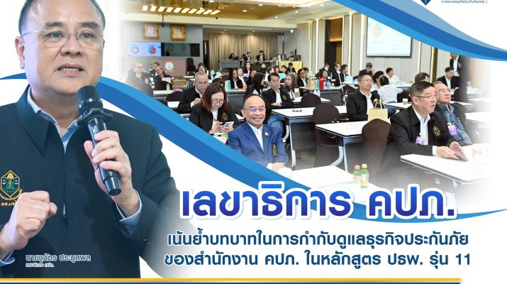 เมื่อวันที่ 26 เมษายน 2568 นายชูฉัตร ประมูลผล เลขาธิการคณะกรรมการกำกับและส่งเสริมการประกอบธุรกิจประกันภัย (เลขาธิการ คปภ.) ได้เข้าร่วมการบรรยายในหัวข้อ “การกำกับดูแลธุรกิจประกันภัย” ซึ่งจัดโดย หลักสูตรประกาศนียบัตรธรรมาภิบาลทางการแพทย์สำหรับผู้บริหารระดับสูง รุ่นที่ 11 (ปธพ. 11) ณ ห้องประชุมวชิรเวช ชั้น 14 อาคารมหิตลาธิเบศร กระทรวงสาธารณสุข เลขาธิการ คปภ. ได้กล่าวถึงภาพรวมของธุรกิจประกันภัยไทยที่มีการพัฒนาอย่างต่อเนื่อง ท่ามกลางบริบทการเปลี่ยนแปลงทั้งด้านเศรษฐกิจ สังคม และเทคโนโลยี พร้อมทั้งอธิบายบทบาทของสำนักงาน คปภ. ในการกำกับดูแลธุรกิจประกันภัย ผ่านกฎหมายและกลไกต่าง ๆ ที่มุ่งคุ้มครองสิทธิประโยชน์ของประชาชนควบคู่ไปกับการสร้างความเชื่อมั่นและส่งเสริมให้ธุรกิจประกันภัยเติบโตอย่างมั่นคง