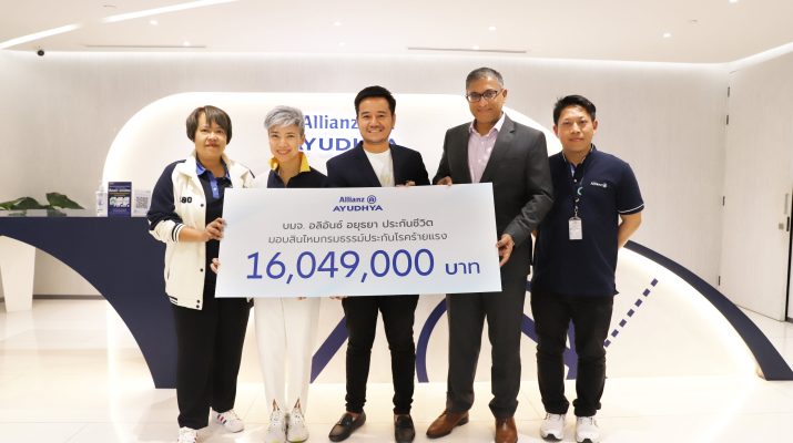 มอบสินไหม : นายอามัน คาพัว (ที่สองจากขวา) รองกรรมการผู้จัดการใหญ่สายงานบริหารตัวแทน นางสาวพัชรา ทวีชัยวัฒนะ (ที่สองจากซ้าย) รองกรรมการผู้จัดการใหญ่สายงานบริหารงานลูกค้า พร้อมด้วยผู้บริหารระดับสูง สายงานบริหารตัวแทน บมจ. อลิอันซ์ อยุธยา ประกันชีวิต ส่งมอบสินไหมกรมธรรม์ประกันโรคร้ายแรง จำนวนเงินทั้งสิ้น 16,049,000 บาท ให้กับ นายกิตติพงษ์ บูรณเฉลิมพงษ์ (กลาง) ตามแผนกรมธรรม์ความคุ้มครองโรคร้ายแรง ตอกย้ำความมั่นคงของบริษัท ให้ความคุ้มครองและตอบสนองทุกความต้องการของลูกค้า พร้อมเคียงข้างทุกจังหวะชีวิต ณ อาคารเพลินจิต ทาวเวอร์