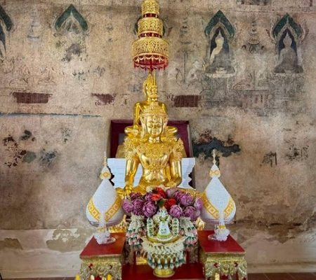 เครื่องบวงสรวงยิ่งใหญ่อลังการตั้งตระหง่านในวันดีศรีพญาวัน 10 พฤษภาคม 2568 ณ วัดชมภูเวก นนทบุรี