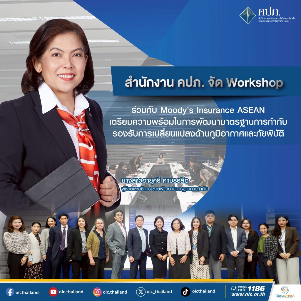 “การจัด Workshop ร่วมกันระหว่าง สำนักงาน คปภ. และ Moody’s Insurance ASEAN ในครั้งนี้ นอกจากจะเป็นเวทีสำคัญในการแบ่งปันองค์ความรู้ให้กับผู้เข้าร่วมแล้ว ยังเป็นการสร้างความร่วมมือระดับหน่วยงานในระยะยาว เพื่อประสานความร่วมมือกับ ทุกภาคส่วนประกันภัย ซึ่งอยู่ในจุดที่ต้องเตรียมความพร้อมเพื่อรับมือกับภัยความเสี่ยงที่มีความซับซ้อนมากขึ้น อันจะช่วยยกระดับมาตรฐานในการคาดการณ์ความเสี่ยงให้ดีขึ้น และจะช่วยสร้างอุตสาหกรรมประกันภัยไทยให้มีความยืดหยุ่น และแข็งแกร่งมากขึ้น เพื่อให้สามารถร่วมกันจัดการกับความท้าทายในอนาคต” ผู้ช่วยเลขาธิการ สายพัฒนามาตรฐานการกำกับ กล่าวในตอนท้าย