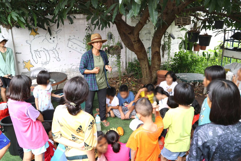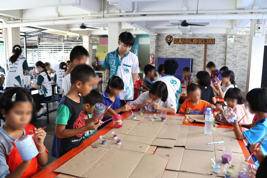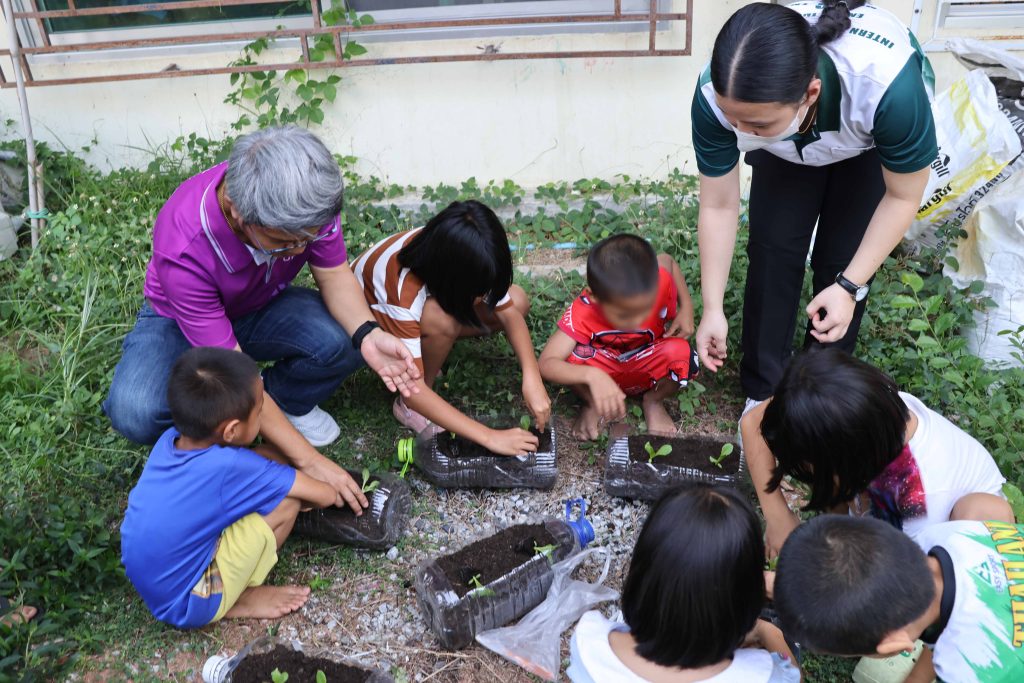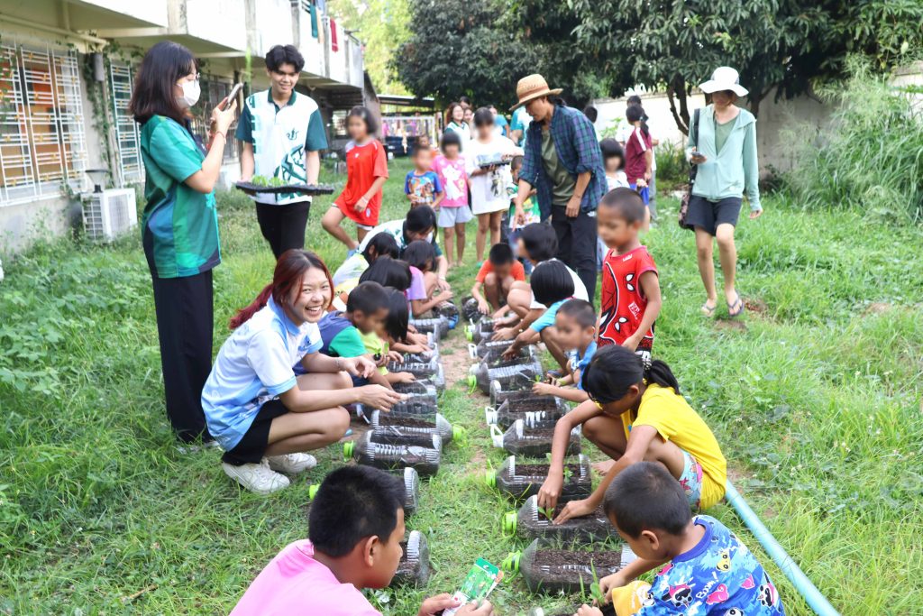 ส่วนกิจกรรมแบ่งเป็น 2 ฐานหลัก ได้แก่ ฐานที่ 1 “แปลงผักเติมฝัน สร้างพลังให้เด็ก” เพื่อส่งเสริมการเรียนรู้ด้านเกษตรกรรม การใช้วัสดุรีไซเคิล และเด็ก ๆ และบุคลากรสามารถนำผักที่ปลูกมาบริโภคได้ สอดคล้องกับ SDGs ข้อที่ 1 (ขจัดความยากจน) ข้อที่ 2 (ขจัดความหิวโหย) ข้อที่ 12 (การผลิตและบริโภคที่ยั่งยืน) และข้อที่ 15 (การใช้ระบบนิเวศบนบกอย่างยั่งยืน) และฐานที่ 2 “รักปอด ต้องปลอดฝุ่น” เพื่อสร้างความรู้เกี่ยวกับ PM2.5 และแนวทางป้องกันตนเอง พร้อมเสริมสร้างความรับผิดชอบต่อสิ่งแวดล้อมผ่านกิจกรรมการปลูกไม้ยืนต้นเพิ่มเติมในบริเวณมูลนิธิ สนับสนุน SDGs ข้อที่ 3 (สุขภาพและความเป็นอยู่ที่ดี) และข้อที่ 13 (การรับมือการเปลี่ยนแปลงสภาพภูมิอากาศ) บรรยากาศการทำกิจกรรมเต็มไปด้วยความสนุกสนาน และความกระตือรือร้นในการแสวงหาความรู้และประสบการณ์ใหม่ของผู้ให้และผู้รับ โดยผลลัพธ์ของความร่วมมือระหว่างมหาวิทยาลัย ภาคเอกชน และภาคประชาสังคม ครั้งนี้สะท้อนแนวทาง SDGs ข้อที่ 8 (การเติบโตทางเศรษฐกิจและงานที่มีคุณค่า) และข้อที่ 17 (ความร่วมมือเพื่อการพัฒนาที่ยั่งยืน)