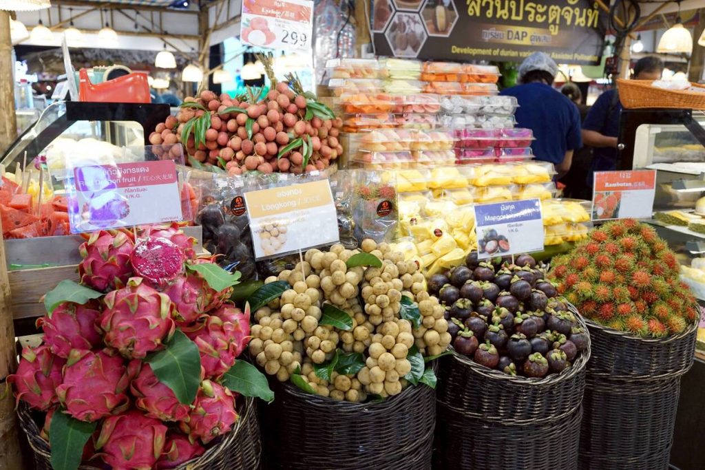 พร้อมยกทัพที่สุดผลไม้จากทั่วประเทศไทยมาไว้ในที่เดียว อาทิ มังคุด, เงาะโรงเรียน, สละสุมาลี, ขนุนทองประเสริฐ จากภาคตะวันออก, ลิ้นจี่ฮงฮวย, ลิ้นจี่อัมรินทร์, มะม่วงไซซี, มะม่วงสุ่ยมี่เถา, มะม่วงพระอาทิตย์, อะโวคาโด จากภาคเหนือ, มะม่วงน้ำดอกไม้, ฝรั่งกิมจู, ฝรั่งสุ่ยมี่, กระท้อนปุยฝ้าย, มะไฟ, ลองกอง, น้อยหน่า, เมล่อนญี่ปุ่นเนื้อเขียวและเนื้อส้ม, กล้วยหอม จากภาคกลาง ฝรั่งหงเปาสือ, แตงโมทรัมอัพ จากภาคอีสาน, สับปะรดปัตตาเวีย, ส้มโอทับทิมสยาม, มังคุดใต้, มะละกอเรดเลดี้ จากภาคใต้ นอกจากนี้ยังมีผลไม้ที่หาทานยาก “มะพร้าวกะทิ” บ้านแพ้ว จากจังหวัดสมุทรสาคร และส้มโอขาวใหญ่ จากจังหวัดสมุทรสงคราม ไม่เพียงแค่นั้น เมืองสุขสยาม ยังเปิดพื้นที่สนับสนุนสินค้าจากชุมชน ภูมิภาคต่างๆทั่วไทย เพื่อส่งเสริมเศรษฐกิจที่ยั่งยืน อาทิ มะม่วงน้ำปลาหวาน มะม่วงแก้วขมิ้น จากสวนต.ตระกูล จังหวัดเชียงราย, มะขามหวาน, ไอศกรีมมะพร้าว, ข้าวเหนียวมะม่วง และผลไม้แปรรูป เช่น ทุเรียนฟรีดราย, มังคุดอบแห้ง เครื่องดื่มน้ำผลไม้นานาชนิด