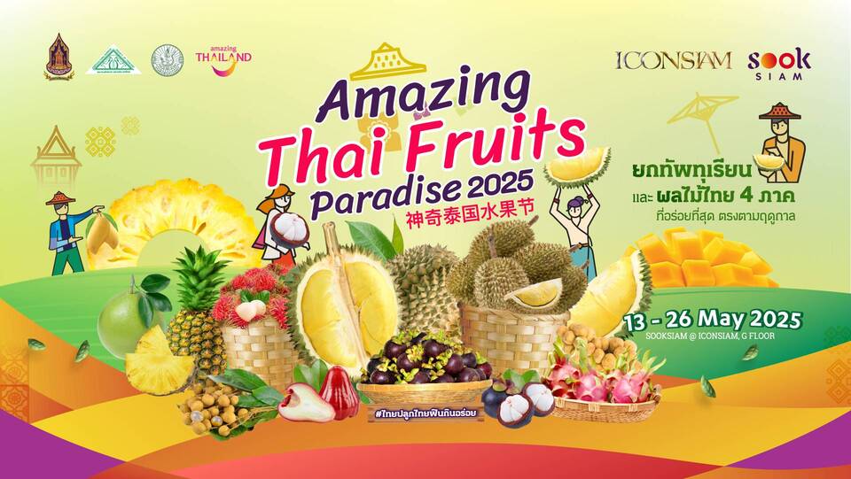 สำหรับ เมืองสุขสยาม ปีนี้ตั้งใจมอบประสบการณ์สุดพิเศษให้คนรักผลไม้ไทย ด้วยการจัดงาน “SOOKSIAM Amazing Thai Fruits Paradise 2025” ตั้งแต่วันนี้ -26 พฤษภาคม 2568 ณ เมืองสุขสยาม ชั้น G ไอคอนสยาม โดยความร่วมมือของ กรมส่งเสริมการเกษตร สมาคมพืชสวนแห่งประเทศไทย และเครือข่ายเกษตรกรชาวสวนผลไม้ไทย นำเสนอความมหัศจรรย์ของผลไม้ไทยให้ชาวไทยและชาวต่างชาติได้ลิ้มลอง ในราคาสุดพิเศษจากหน้าสวนถึงผู้บริโภคโดยตรง โดยเนรมิตพื้นที่รอบเมืองสุขสยามให้กลายเป็นถนนสายผลไม้ เลือกสรรผลไม้ตามฤดูกาล ที่ดีที่สุด อร่อยที่สุด ส่งตรงจากสวนเกษตรกรทั้ง 4 ภาคของไทยมานำเสนอทุเรียนหลากหลายสายพันธุ์จากแหล่งเพาะปลูกที่ดีที่สุด ส่งตรงจากสวนถึงผู้บริโภค