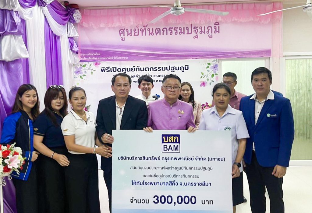 โดยงานดังกล่าว BAM ได้ร่วมพิธีวางศิลาฤกษ์อาคารผู้ป่วยในชั้น 7 และพิธีเปิดห้องทันตกรรม ในโอกาสมอบเงินสนับสนุนการจัดสร้างศูนย์ทันตกรรม เพื่อเป็นงบประมาณในการจัดสร้างศูนย์ทันตกรรมปฐมภูมิสำหรับอาคารผู้ป่วยใน 7 ชั้นที่สร้างขึ้นใหม่ เพื่อรองรับปัญหาทันตสุขภาพในระยะยาว เพิ่มศักยภาพในการปฏิบัติงาน ของทันตแพทย์ และเพื่อจัดซื้อครุภัณฑ์บริการทางทันตกรรมที่จำเป็นต่อการบริการประชาชนในพื้นที่อำเภอสีคิ้ว และอำเภอใกล้เคียงต่อไป