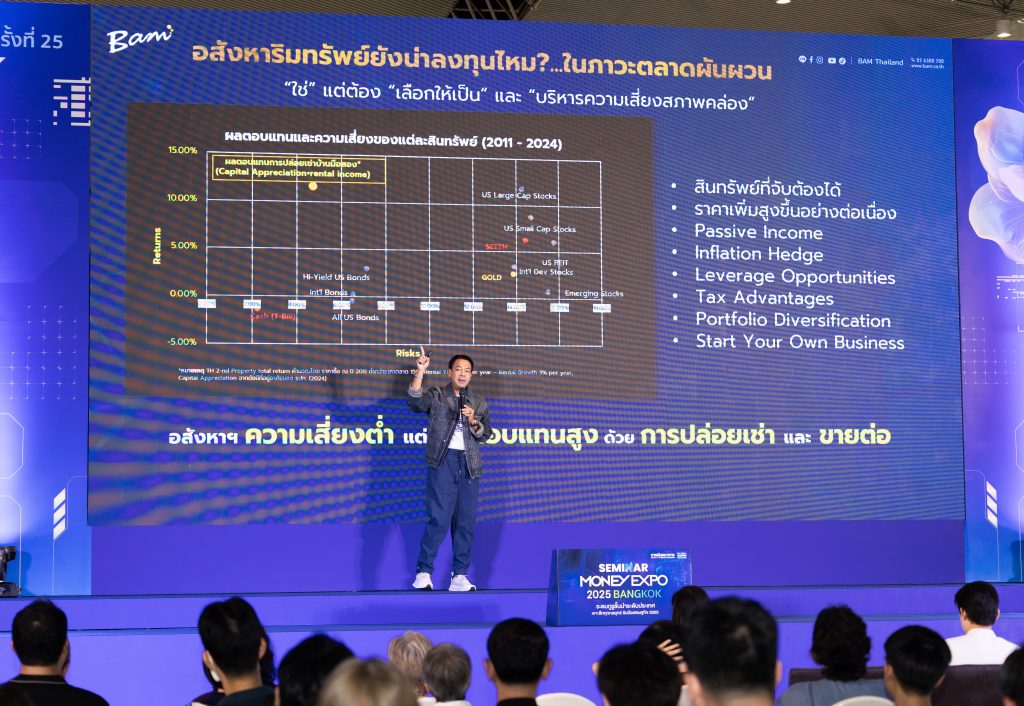 ดร.รักษ์ วรกิจโภคาทร ประธานเจ้าหน้าที่บริหาร บริษัทบริหารสินทรัพย์ กรุงเทพพาณิชย์ จำกัด (มหาชน) หรือ BAM กล่าวในงานเสวนา หัวข้อ “ทรัพย์รอขาย NPA กระแสใหม่ การลงทุนที่น่าจับตา” ในงานมหกรรมการเงินกรุงเทพ ครั้งที่ 25 MONEY EXPO 2025 BANGKOK เมื่อวันเสาร์ที่ 17 พฤษภาคม 2568 ที่ผ่านมา ณ บริเวณเวทีกลาง หน้าชาเลนเจอร์ 2 อาคารชาเลนเจอร์ 2-3 อิมแพ็ค เมืองทองธานี โดยมี นายโอภาส ถิรปัญญาเลิศ หรือ “คุณใหญ่” จาก เพจ โอภาส ใหญ่ Happy Investor และ นางสาวศิรประภา รักษ์สุจริต หรือ “คุณจิ๊บ” จาก เพจอสังหาเรื่องจิ๊บๆ “2 กูรูชั้นนำด้านอสังหาริมทรัพย์” ร่วมในงานนี้ ท่ามกลางความสนใจเข้าร่วมรับฟังของนักลงทุนและประชาชนทั่วไปเป็นจำนวนมาก