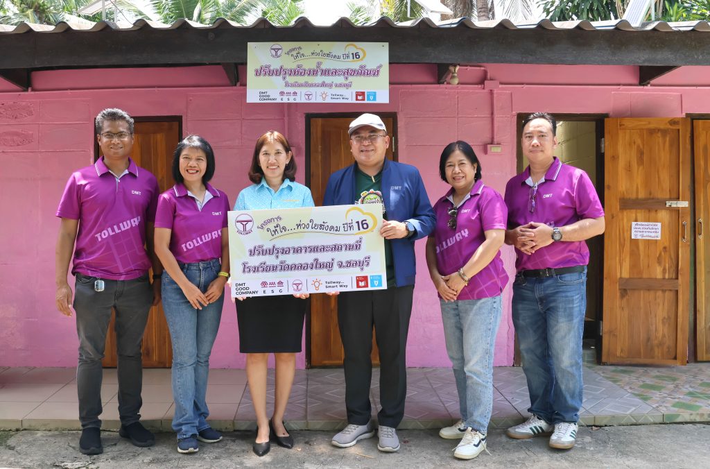 กิจกรรมจิตอาสา : ดร.ศักดิ์ดา พรรณไวย (คนที่3จากขวา) กรรมการผู้จัดการ บริษัท ทางยกระดับดอนเมือง จำกัด (มหาชน) หรือ DMT พร้อมด้วยคณะผู้บริหารบริษัทฯ ลงพื้นที่ทำกิจกรรมจิตอาสาพัฒนาชุมชนและสังคมสู่ความยั่งยืน ณ โรงเรียนวัดคลองใหญ่ อ.บ้านบึง จ.ชลบุรี ปรับปรุงสภาพแวดล้อมภายในโรงเรียน ประกอบด้วย การทาสีผนังอาคารเรียน ทำความสะอาดห้องน้ำและเปลี่ยนสุขภัณฑ์ห้องน้ำใหม่ พร้อมจัดตั้งจุดแยกขยะเพื่อส่งเสริมสิ่งแวดล้อมและสุขภาวะที่ดีให้กับนักเรียน ตามโครงการ “ให้ใจ ห่วงใยสังคม” ที่ทำมาอย่างต่อเนื่องเป็นปีที่ 16 โดยมีนางสาวชมภูนุช สุภาผล (คนที่3จากซ้าย..) ผู้อำนวยการโรงเรียน เป็นผู้แทนรับมอบ ทั้งนี้กิจกรรมดังกล่าวสอดคล้องกับเป้าหมายการพัฒนาที่ยั่งยืนของสหประชาชาติ (SDGs) เป้าหมายข้อที่ 4 การศึกษาที่มีคุณภาพ และเป้าหมายข้อที่ 6 การจัดการน้ำและสุขาภิบาล เมื่อเร็วๆนี้