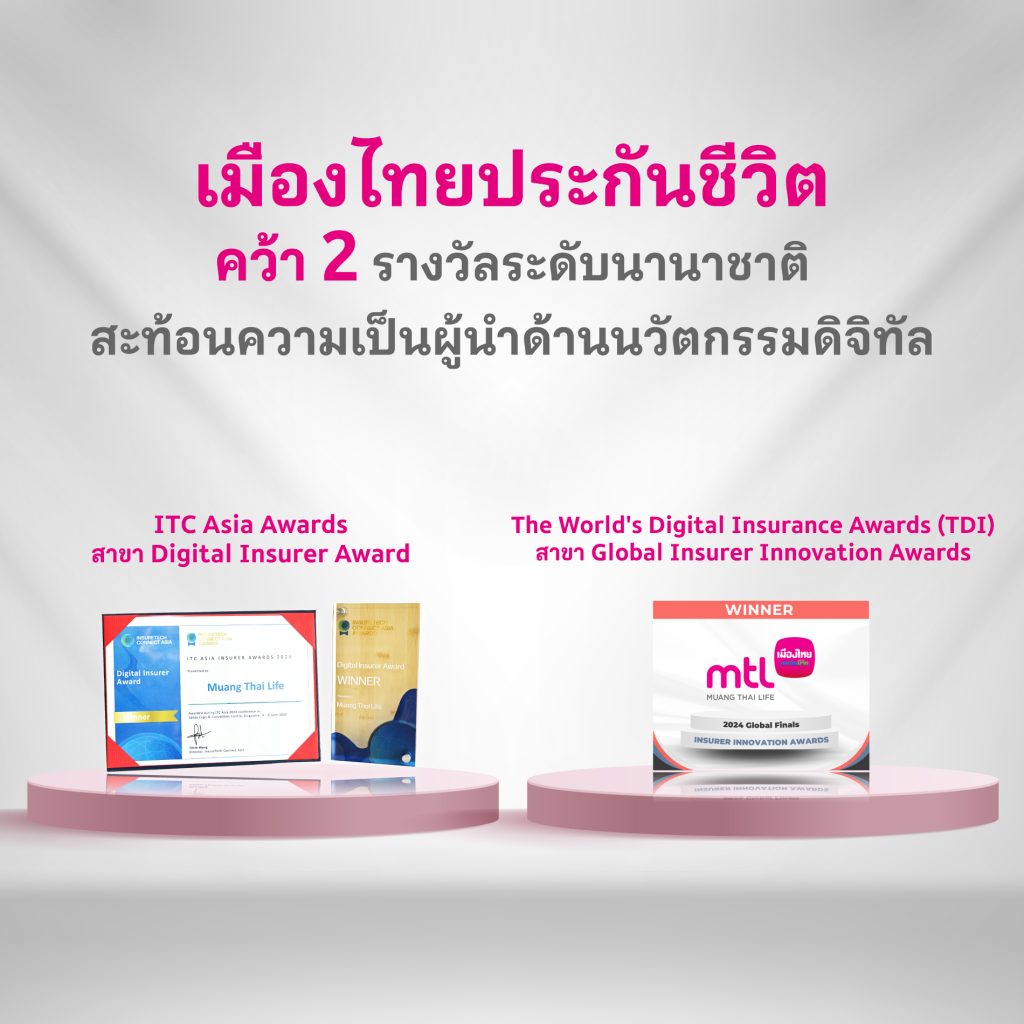 เมืองไทยประกันชีวิต ตอกย้ำความเป็นผู้นำด้านนวัตกรรมดิจิทัลในธุรกิจประกันภัย ด้วยการคว้า 2 รางวัลสำคัญระดับนานาชาติ ได้แก่ รางวัล ITC Asia Awards 2024 สาขา Digital Insurer Award และ รางวัล The World’s Digital Insurance Awards 2024 สาขา Global Insurer Innovation Awards จากเวที The Digital Insurer (TDI) ซึ่งนับเป็นครั้งแรกที่บริษัทได้รับรางวัลทั้งสองรางวัลนี้ สะท้อนถึงความสำเร็จในการพัฒนาโมเดลธุรกิจดิจิทัลที่สามารถเข้าถึงลูกค้าได้อย่างแท้จริง