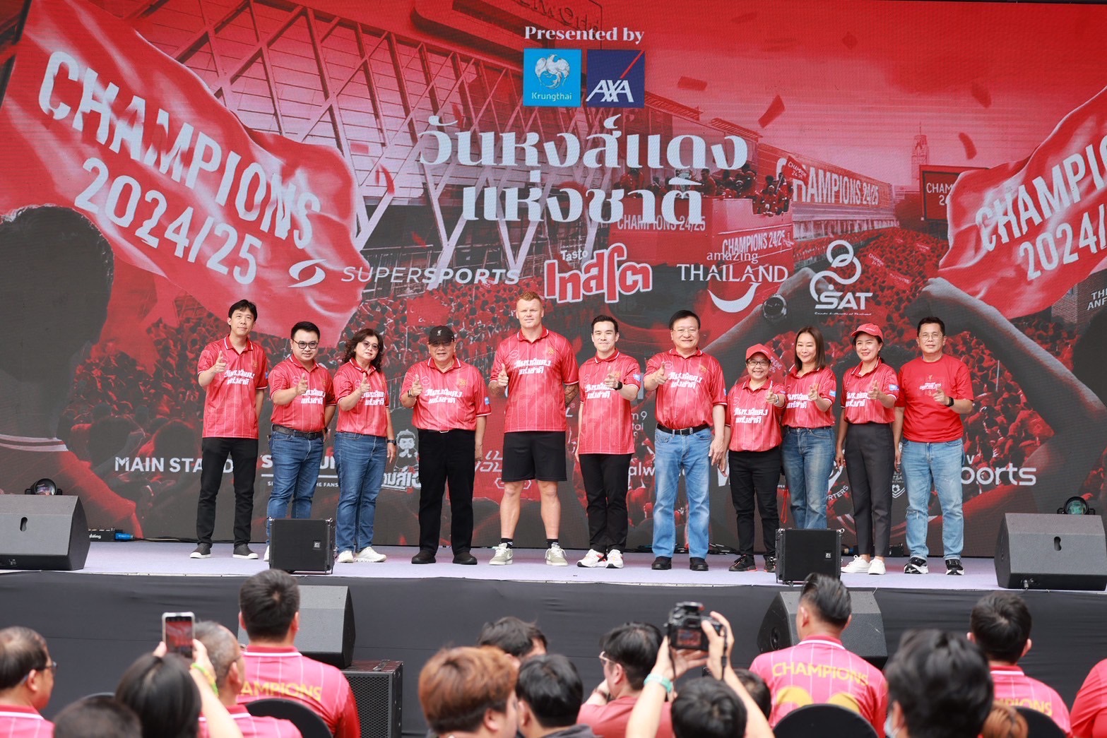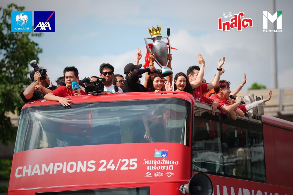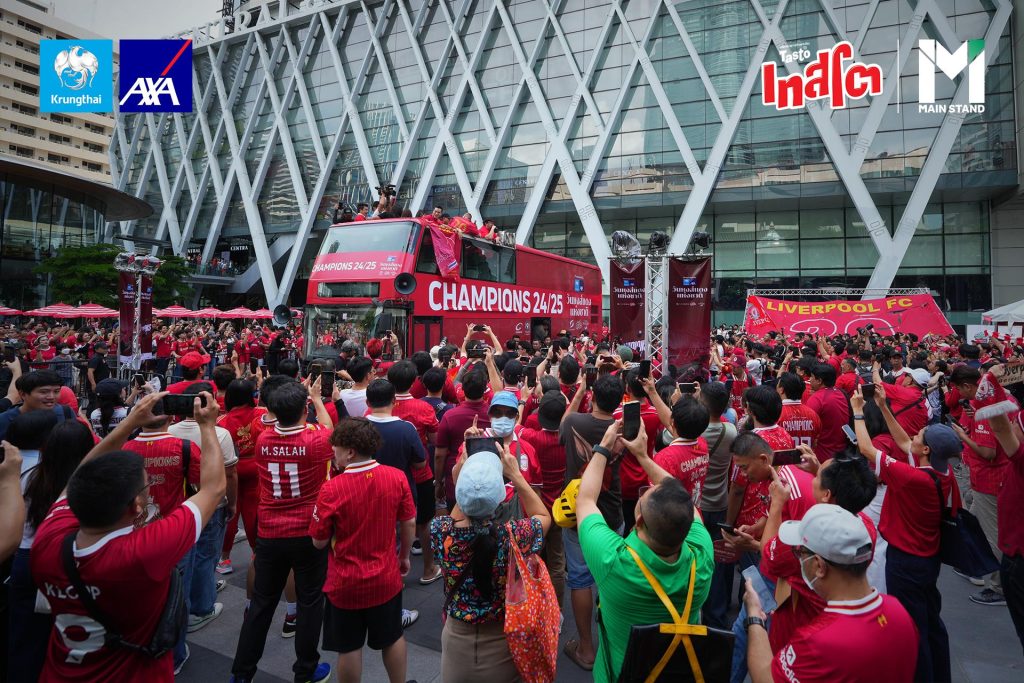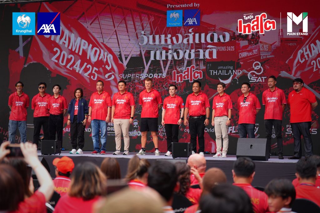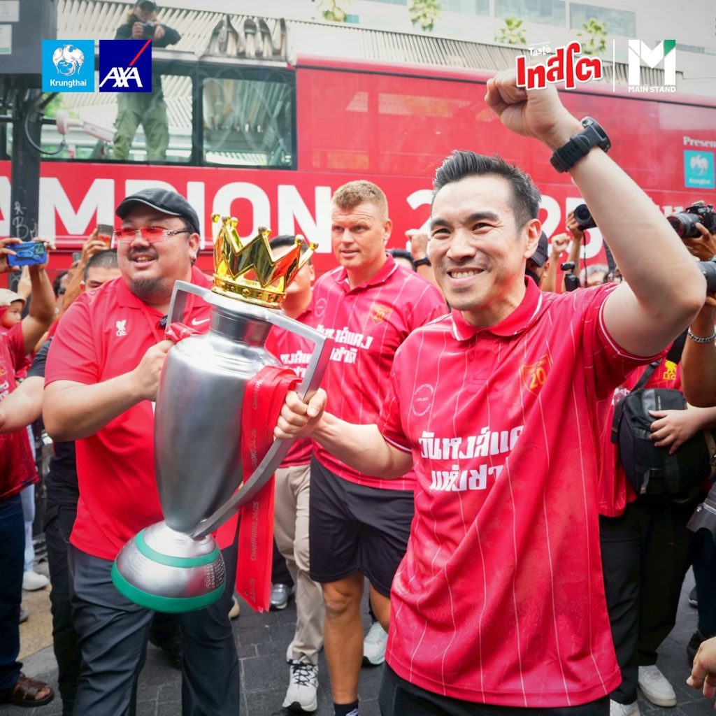 บริษัท กรุงไทย-แอกซ่า ประกันชีวิต จำกัด (มหาชน) ผู้สนับสนุนหลักในการจัดงาน “วันหงส์แดงแห่งชาติ” Presented by กรุงไทย-แอกซ่า ประกันชีวิต และผู้สนับสนุน เทสโต พร้อมด้วย Main Stand, The Stadium, เกมส์เอง และเบลล์ ขอบสนาม เนรมิตวันประวัติศาสตร์การฉลองแชมป์หงส์แดง เพื่อให้แฟน ๆ ได้ร่วมฉลองอย่างจุใจ กระทบไหล่ ยอห์น อาร์เน่ รีเซ่ ตำนานหงส์แดง พร้อมอัดแน่นด้วยกิจกรรมมากมายที่จะทำให้แฟนหงส์แดง ร่วมจดจำวันสำคัญในครั้งนี้ไปพร้อมกัน ณ ศูนย์การค้า Centralworld ที่ได้เนรมิตลานกิจกรรมด้านหน้าให้เป็น “สนามแข่งของหงส์แดง” ในวันที่ 25 พฤษภาคม 2568 ตั้งแต่บ่ายยันค่ำ ชูถ้วยแชมป์ไปด้วยกัน