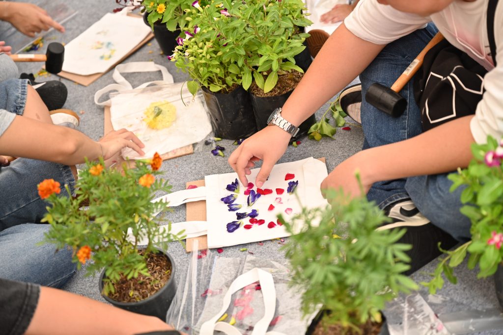 –กิจกรรมทำกระเป๋าผ้าใส่ยา eco-print เพื่อส่งมอบให้โรงพยาบาลในพื้นที่ห่างไกล ซึ่งเป็นการปลูกฝังจิตสำนึกในการแบ่งปันและการใส่ใจสิ่งแวดล้อม