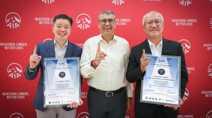 ทั้งนี้ เอไอเอ ประเทศไทย เป็นบริษัทประกันชีวิตแห่งแรกของไทยที่ได้รับการรับรองเข้าเป็นสมาชิกแนวร่วมต่อต้านคอร์รัปชันในภาคเอกชนไทย ตั้งแต่ปี 2556 และเอไอเอ ยังคงมุ่งมั่นเดินหน้าสร้างสรรค์สังคมให้เป็นสังคมคุณภาพและสนับสนุนคนไทยให้มีสุขภาพและชีวิตที่ดีขึ้นต่อไป ตามคำมั่นสัญญา ‘Healthier, Longer, Better Lives’