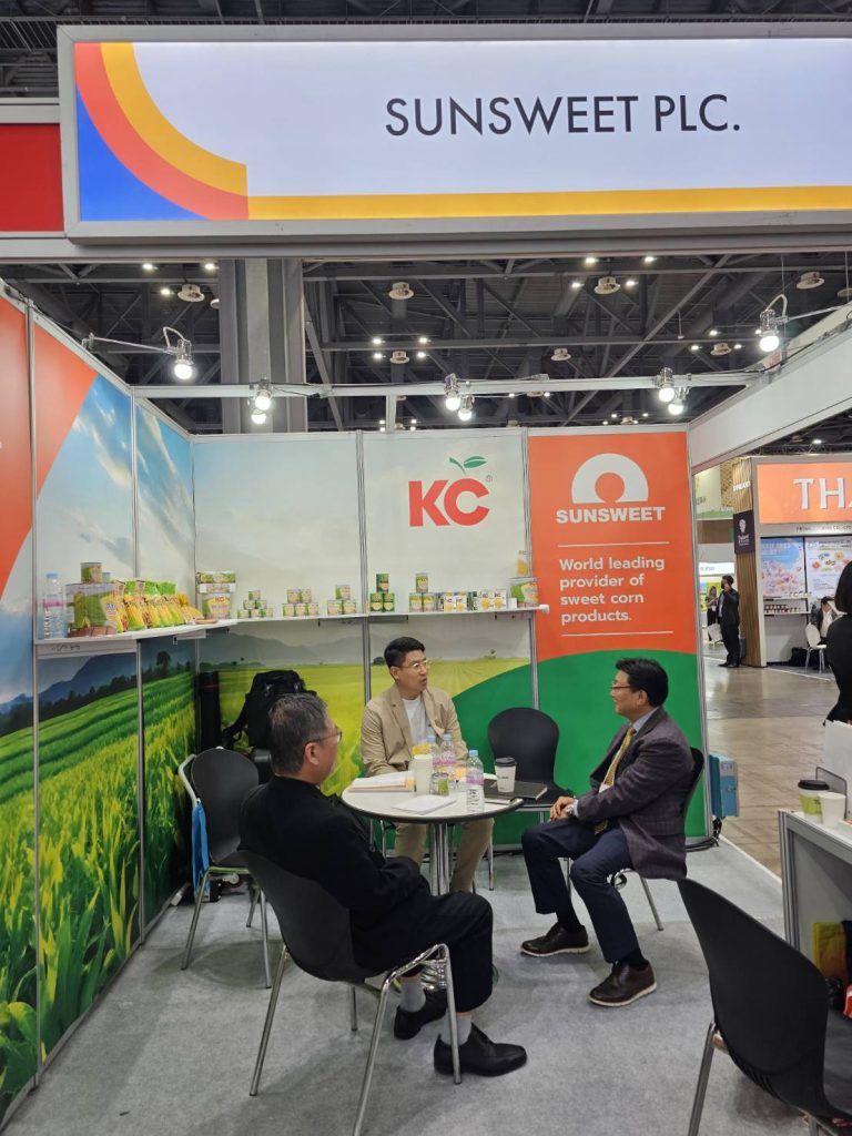 นายอดิศัย สำเนียง ผู้อำนวยการฝ่ายขายต่างประเทศ บมจ.ชันสวีท เปิดเผยว่า การเข้าร่วมงานครั้งนี้เป็นหนึ่งในกลยุทธ์หลักของ SUN ในการขยายตลาดส่งออก โดยเฉพาะในภูมิภาคเอเชียตะวันออก ซึ่งเกาหลีใต้ถือเป็นตลาดที่มีศักยภาพสูง ด้วยความต้องการบริโภคสินค้าเกษตรแปรรูปที่เน้นคุณภาพ ความสะอาด และความปลอดภัยทางอาหาร ซึ่งสอดคล้องกับแนวทางการพัฒนาผลิตภัณฑ์ของเรา ในงานนี้ SUN ได้นำเสนอผลิตภัณฑ์ภายใต้แบรนด์ “KC” อาทิ ข้าวโพดหวานบรรจุกระป๋อง ข้าวโพดหวานบรรจุสูญญากาศ มันหวานญี่ปุ่นเผา และผลิตภัณฑ์พร้อมรับประทานอื่น ๆ ที่ตอบโจทย์เทรนด์สุขภาพและความสะดวกสบายของผู้บริโภคยุคใหม่ พร้อมทั้งเปิดโอกาสในการเจรจาธุรกิจและสร้างพันธมิตรทางการค้าระหว่างประเทศ
