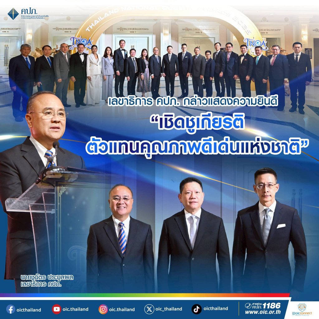 นายชูฉัตร ประมูลผล เลขาธิการคณะกรรมการกำกับและส่งเสริมการประกอบธุรกิจประกันภัย (เลขาธิการ คปภ.) กล่าวแสดง ความยินดีและมอบรางวัลโล่กิตติคุณ 15 ปี และ 10 ปี ในงานพิธีมอบรางวัลตัวแทนคุณภาพดีเด่นแห่งชาติ หรือ Thailand National Quality Awards (TNQA) ครั้งที่ 42 ประจำปี 2568 เพื่อเชิดชูเกียรติแก่ตัวแทนประกันชีวิตที่มีคุณภาพและเป็นแบบอย่างที่ดีแก่ ตัวแทนประกันชีวิตทั่วไป จัดโดยสมาคมประกันชีวิตไทย ณ ห้องรอยัล จูบิลี่ อิมแพค เมืองทองธานี เมื่อวันพฤหัสบดีที่ 19 มิถุนายน 2568