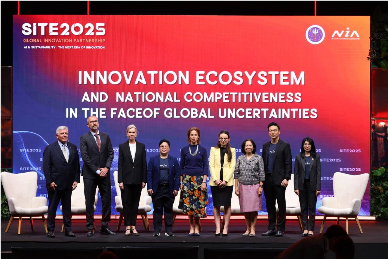 ในเวทีเสวนาระดับนานาชาติภายใต้หัวข้อ “Innovation Ecosystem and National Competitiveness in the Face of Global Uncertainties” ตัวแทนระดับสูงจาก 5 ประเทศจากภูมิภาคยุโรปและอเมริกาใต้ ได้แก่ ชิลี เช็ก ฟินแลนด์ สวีเดน และฮังการี และกระทรวงการต่างประเทศ ได้ร่วมแลกเปลี่ยนประสบการณ์การสร้างระบบนิเวศด้านนวัตกรรม เพื่อเสริมความสามารถในการแข่งขันทางเศรษฐกิจ ในยุคที่โลกกำลังเผชิญกับความไม่แน่นอนอย่างต่อเนื่อง