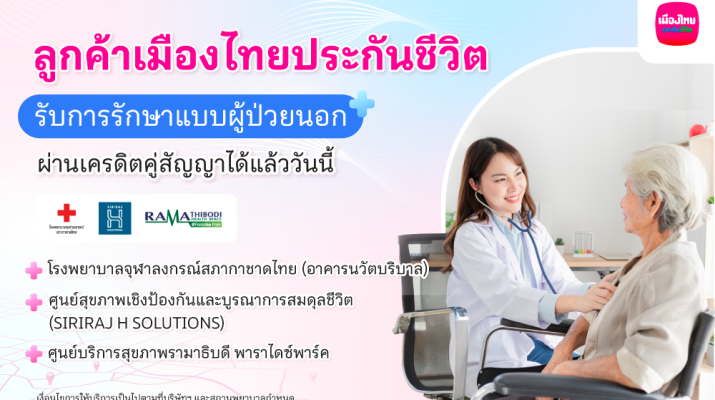 เมืองไทยประกันชีวิต มุ่งมั่นยกระดับประสบการณ์การดูแลสุขภาพลูกค้าอย่างต่อเนื่อง ล่าสุด เปิดให้บริการ “ยื่นเคลมผู้ป่วยนอก (OPD)” แบบไม่ต้องสำรองจ่าย ผ่านระบบเครดิตคู่สัญญา (Cashless Claim) กับสถานพยาบาลชั้นนำ เพื่อมอบความสะดวกสบาย อุ่นใจกับค่ารักษาพยาบาล พร้อมเปิดตัว 3 พันธมิตรใหม่ เพิ่มความมั่นใจให้แก่ลูกค้าทุกช่วงเวลาของการดูแลสุขภาพ