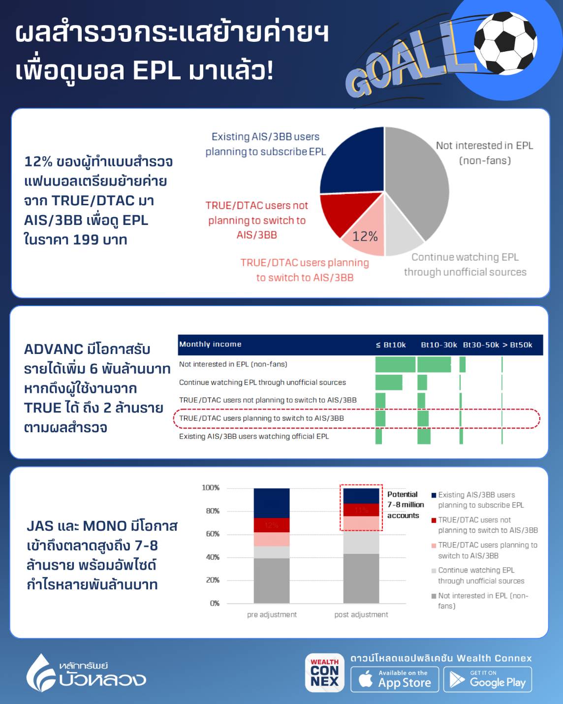 ⚽ 12% ของผู้ทำแบบสำรวจแฟนบอลเตรียมย้ายค่ายจาก TRUE/DTAC มา AIS/3BB เพื่อดู EPL ในราคา 199 บาท