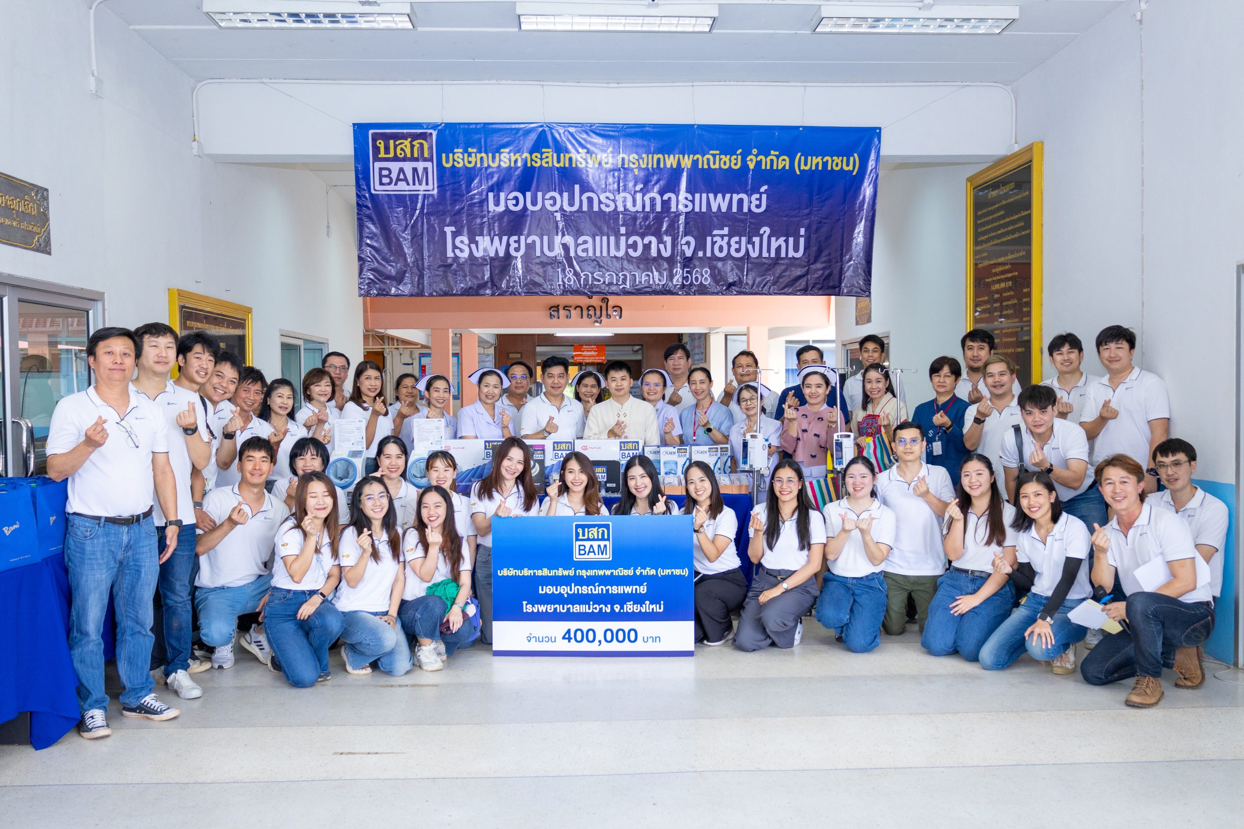 ดร.วุฒิพันธุ์ ตวันเที่ยง รองประธานเจ้าหน้าที่บริหาร พร้อมด้วยคณะผู้บริหาร และพนักงาน บริษัทบริหารสินทรัพย์ กรุงเทพพาณิชย์ จำกัด (มหาชน) หรือ BAM ร่วมมอบอุปกรณ์การแพทย์ จำนวนทั้งสิ้น 19 รายการ รวมมูลค่า 400,000 บาท ให้กับโรงพยาบาลแม่วาง จังหวัดเชียงใหม่ เพื่อสนับสนุนภารกิจด้านการรักษาพยาบาลของบุคลากรทางการแพทย์ และเสริมสร้างศักยภาพในการให้บริการประชาชนในพื้นที่