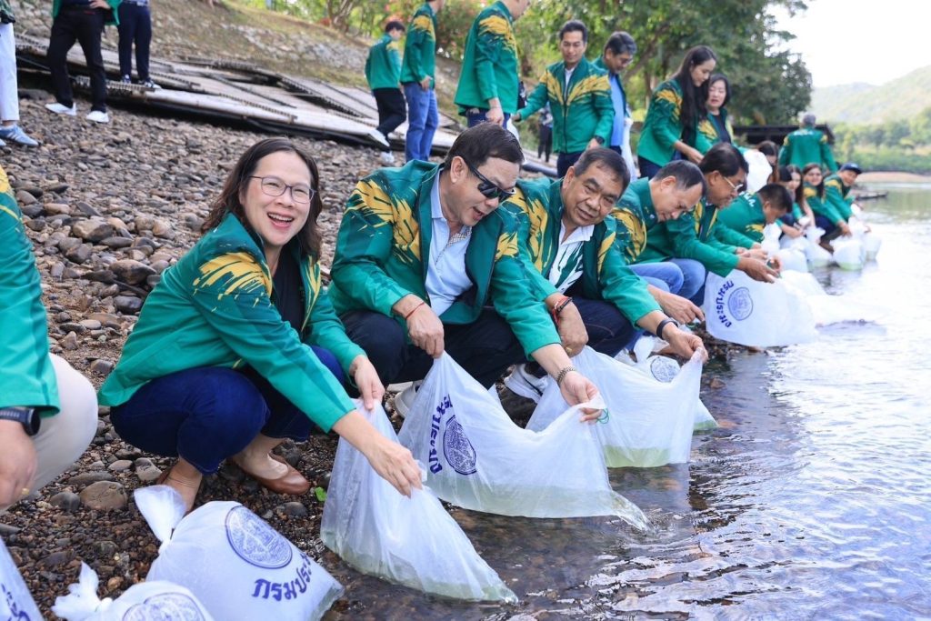 นอกจากนี้ ผู้จัดการ ธ.ก.ส. และคณะผู้บริหารระดับสูง ธ.ก.ส. ยังร่วมกิจกรรม “ปล่อยพันธุ์ปลาคืนสู่แหล่งน้ำธรรมชาติ” ร่วมกับกรมประมง กระทรวงเกษตรและสหกรณ์ โดยมีการปล่อยพันธุ์ปลาน้ำจืดหลากหลายชนิด จำนวน 28,000 ตัว เพื่อเป็นการขับเคลื่อนภารกิจในด้านการส่งเสริมความรับผิดชอบต่อสังคมและสิ่งแวดล้อม (CSR) สร้างการ มีส่วนร่วมในการฟื้นฟูและเพิ่มความอุดมสมบูรณ์ของทรัพยากรธรรมชาติ รวมถึงสร้างความสมดุลให้ระบบนิเวศอย่างยั่งยืน อาทิ ปลายี่สก ปลาแก้มช้ำ และปลาบ้า ณ แม่น้ำแควใหญ่ จังหวัดกาญจนบุรี