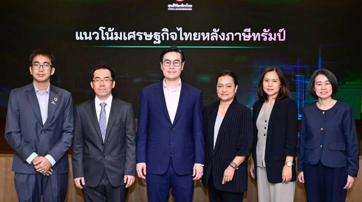 นางสาวณัฐพร ตรีรัตน์ศิริกุล รองกรรมการผู้จัดการ บริษัท ศูนย์วิจัยกสิกรไทย จำกัด ระบุว่า ศูนย์วิจัยกสิกรไทยปรับประมาณการเศรษฐกิจไทยปี 2568 มาอยู่ที่ 1.8% จาก 1.5% จากแรงหนุนการเร่งส่งออกไปยังสหรัฐฯ ก่อนมาตรการภาษีฯ ตามมาตรา 232 และภาษีสินค้าอ้อมผ่านประเทศที่สาม (Transshipment) มีผลบังคับใช้ ทั้งนี้ การส่งออกที่ชะลอตัวลงน้อยกว่าที่คาดในช่วงครึ่งปีหลัง 2568 ส่งผลให้ความเสี่ยงที่เศรษฐกิจไทยจะเข้าสู่ภาวะถดถอยทางเทคนิคนั้น ลดต่ำลง อย่างไรก็ตาม เศรษฐกิจไทยในระยะข้างหน้า ยังมีความท้าทายจากผลกระทบทางตรงและทางอ้อมจากภาษีสหรัฐฯ การท่องเที่ยวที่ชะลอตัว และปัจจัยทางการเมือง ที่ยังต้องติดตาม ขณะที่ ทิศทางอัตราดอกเบี้ยนโยบายในระยะที่เหลือของปี 2568 นั้น มองว่า กนง.มีโอกาสปรับลดอัตราดอกเบี้ยนโยบายลงอีก 1 ครั้งในปีนี้ ซึ่งมาควบคู่กับนโยบายกระตุ้นเศรษฐกิจเฉพาะหน้าของรัฐบาลใหม่