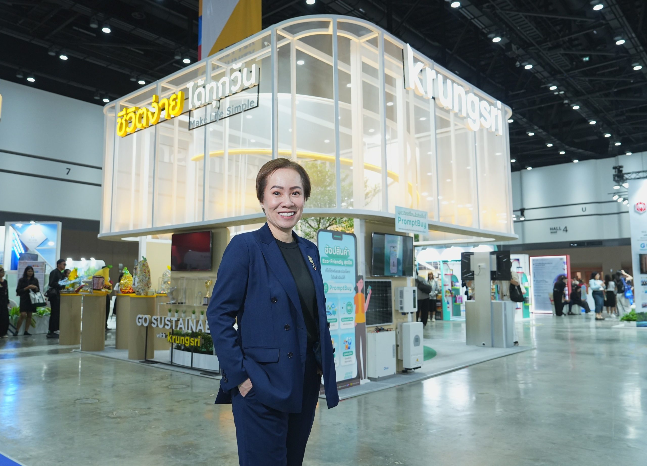 สำหรับปีนี้กรุงศรีนำเสนอพื้นที่จัดแสดงภายใต้แนวคิด “GO Sustainable with krungsri” ที่ออกแบบอย่างใส่ใจสิ่งแวดล้อม โดยการนำโครงสร้างบางส่วนจากงานเดิมกลับมาใช้ซ้ำ (Reuse) และเลือกใช้วัสดุที่เป็นมิตรต่อสิ่งแวดล้อม ถ่ายทอดแนวคิด “หลักคิด–หลักปฏิบัติ” ด้านความยั่งยืนของธนาคารและบริษัทในเครือในมิติที่จับต้องได้ ภายในบูธผู้เข้าชมจะได้พบกับกิจกรรมอินเตอร์แอคทีฟที่ทั้งสนุกและให้ความรู้ ไม่ว่าจะเป็น เกมแยกขยะ เสริมทักษะการจัดการของเสียอย่างถูกวิธี โซนถ่ายภาพ–แชร์โซเชียล พร้อมรับของที่ระลึก Krungsri Reusable Bag รวมถึง นิทรรศการที่นำเสนอผลงานชนะเลิศจาก From Waste to Wow Sustainable Sculpture Contest 2025 by Krungsri ศิลปะสร้างสรรค์จากวัสดุรีไซเคิลที่สะท้อนพลังความคิดใหม่ของเยาวชน นอกจากนี้ยังมีการแนะนำ ผลิตภัณฑ์และบริการด้าน Sustainable Finance ที่ออกแบบมาเพื่อสนับสนุนการเปลี่ยนผ่านสู่ธุรกิจคาร์บอนต่ำอย่างเป็นรูปธรรม ซึ่งกรุงศรีต้องการสร้างพื้นที่ที่ผสานทั้งความรู้ ความบันเทิง และแรงบันดาลใจให้ผู้เข้าชมได้สัมผัสการเงินเพื่อความยั่งยืนในทุกมิติ