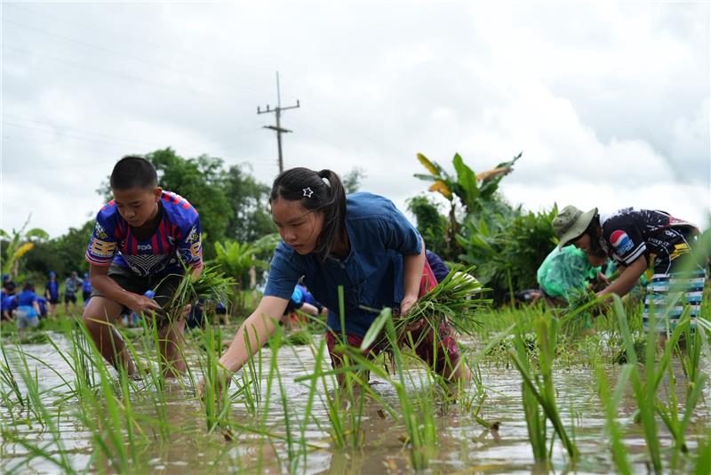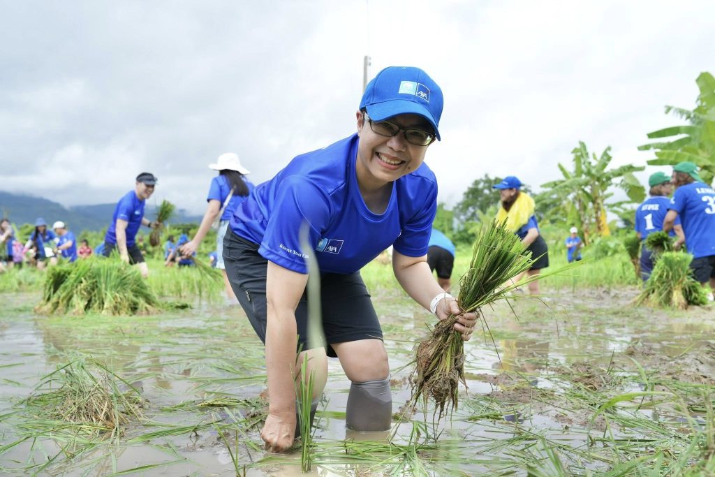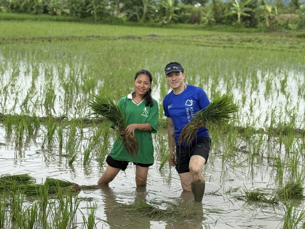 บมจ.กรุงไทย-แอกซ่า ประกันชีวิต นำโดย คุณณัฐพิสิษฐ์ ครุฑครองชัย ประธานเจ้าหน้าที่บริหาร (คนที่ 8 จากซ้าย แถวที่สาม) และ คุณบุปผาวดี โอวรารินท์ ประธานเจ้าหน้าที่บริหาร ฝ่ายการตลาด (คนที่ 9 จากซ้าย แถวที่สาม) นำทีมคณะผู้บริหาร พนักงาน และฝ่ายขายจิตอาสา ร่วมเดินหน้าสร้างความยั่งยืนให้กับชุมชน ผ่านกิจกรรมปลูกข้าว พร้อมทั้งมอบอุปกรณ์ไฟแสงสว่างระบบโซลาร์เซลล์และพันธุ์ปลานานาชนิด ภายใต้โครงการ “แผ่นดินทองเพื่อน้องๆ บ้านนานา ปีที่ 18” ณ. มูลนิธิพันธกิจเด็กและชุมชน บ้านนานา อ. แม่สาย จ. เชียงราย ซึ่งเป็นโครงการที่บริษัทฯ จัดทำอย่างต่อเนื่อง และช่วยสร้างรายได้ที่ยั่งยืน โดยสามารถช่วยสร้างผลผลิตข้าวให้แก่ชุมชนเพิ่มขึ้น จาก 2,000 ก.ก. ต่อปี เป็นมากกว่า 7,000 ก.ก. ต่อปี