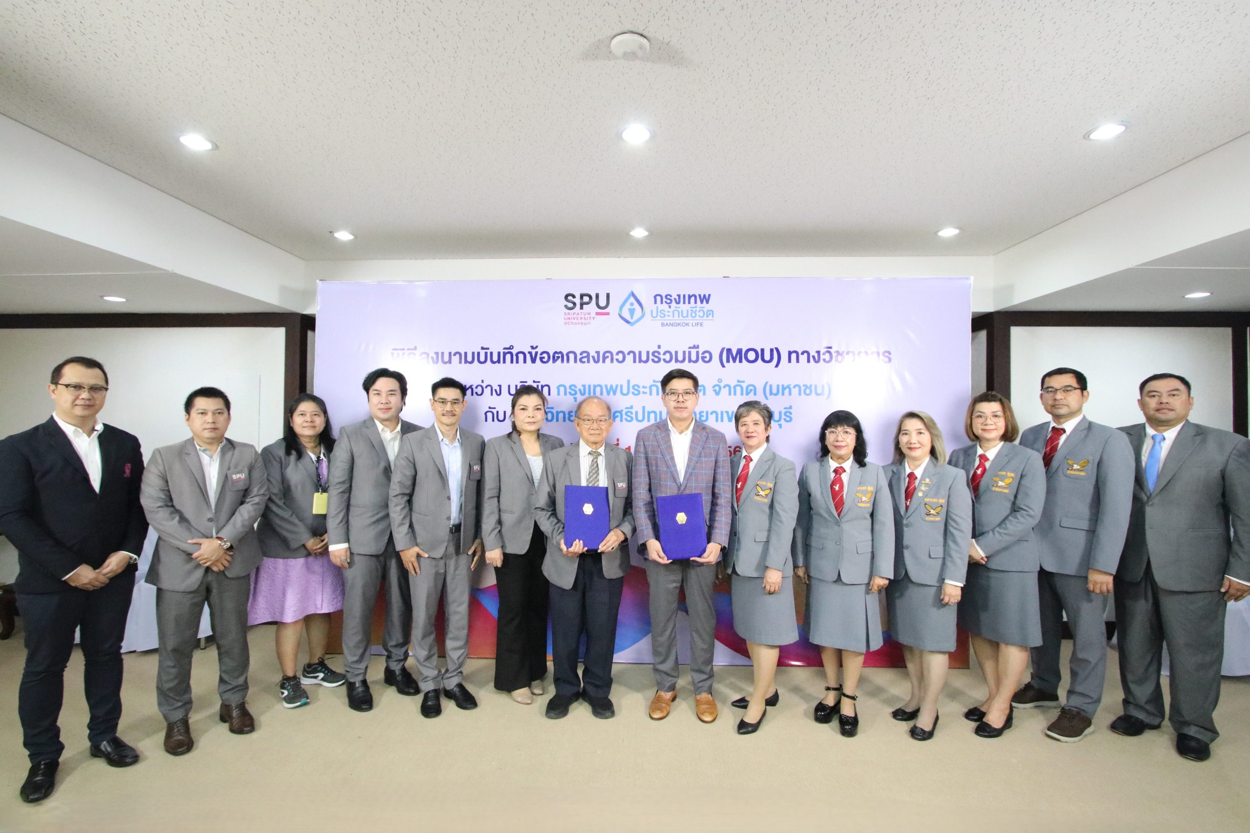 บริษัท กรุงเทพประกันชีวิต จำกัด (มหาชน) นำโดย นายจักรพงศ์ แสงแก้ว ผู้ช่วยผู้จัดการใหญ่ สายงานตัวแทนและที่ปรึกษาทางการเงิน (ที่ 8 จากซ้าย) ลงนามบันทึกข้อตกลงความร่วมมือ (MOU) ทางวิชาการกับ มหาวิทยาลัยศรีปทุม วิทยาเขตชลบุรี โดย ผู้ช่วยศาสตราจารย์ ดร.สุเทพ อุสาหะ ผู้ช่วยอธิการบดี มหาวิทยาลัยศรีปทุม วิทยาเขตชลบุรี (ที่ 7 จากซ้าย) ในโครงการ Mini MBA Certified BLA & SPUC Leader 2025: Entrepreneurial Leaders of the New Era Transform Your Leadership, Transform Your Future โดยมีผู้บริหารฝ่ายขายระดับสูง ภาคตะวันออก ร่วมเป็นสักขีพยาน ซึ่งการลงนามบันทึกข้อตกลงในครั้งนี้ จัดทำขึ้นเพื่อพัฒนาศักยภาพผู้บริหารตัวแทนให้มีทักษะเชิงผู้ประกอบการ ตลอดจนการเสริมสร้างองค์ความรู้ด้านการบริหารธุรกิจและภาวะผู้นำ สร้างแนวคิดเชิงนวัตกรรมและการบริหารจัดการอย่างยั่งยืน โดยมุ่งเน้นความสำคัญของการพัฒนาทักษะเชิงผู้ประกอบการ ภาวะผู้นำ และการใช้เทคโนโลยี AI ในการเสริมสร้างศักยภาพผู้บริหารตัวแทนให้เป็นเจ้าของกิจการที่สามารถขับเคลื่อนธุรกิจประกันชีวิตได้อย่างยั่งยืน ณ  มหาวิทยาลัยศรีปทุม วิทยาเขตชลบุรี เมื่อเร็วๆ นี้