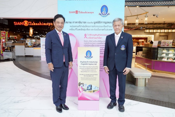 สยาม ทาคาชิมายะ ห้างสรรพสินค้าญี่ปุ่นขนานแท้ ณ ไอคอนสยาม แสดงความมุ่งมั่นตั้งใจจริงในการดูแลห่วงใยสุขภาพของลูกค้าอย่างแท้จริง โดยเฉพาะผู้หญิงทุกช่วงวัย ร่วมกับ มูลนิธิกาญจนบารมี หน่วยงานที่ดำเนินโครงการคัดกรองมะเร็งเต้านมเคลื่อนที่ในสตรีกลุ่มเสี่ยงและด้อยโอกาสทั่วประเทศ, โรงพยาบาลสมิติเวช ธนบุรี, บริษัท บัตรกรุงศรีอยุธยา จำกัด, ไอคอนสยาม และพันธมิตรร้านค้า จัดแคมเปญรณรงค์ประจำปี “PINK RIBBON” ตลอดเดือนตุลาคม ซึ่งเป็นเดือนแห่งการสร้างการรับรู้ภัยมะเร็งสากล เพื่อกระตุ้นการรับรู้และเตือนภัยจากโรคมะเร็งเต้านม มะเร็งที่พบมากที่สุดและเป็นสาเหตุการเสียชีวิตอันดับต้น ๆ ของผู้หญิงไทย โดยใช้ ‘โบว์ริบบิ้นสีชมพู’ สัญลักษณ์การรณรงค์เรื่องมะเร็งเต้านมทั่วโลก เป็นพลังในการสื่อสาร