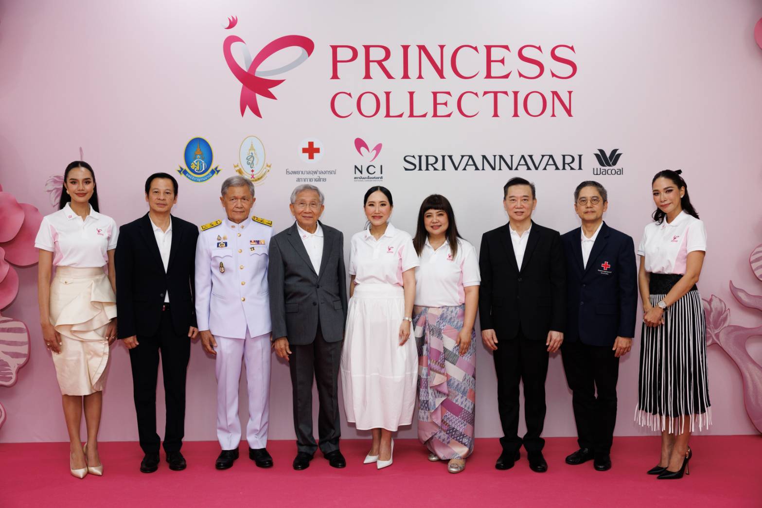 นางรติรส จุลชาต (กลาง) รองประธานกรรมการบริหาร บริษัท ไอริส 2005 จำกัด แบรนด์ SIRIVANNAVARI นางอินทิรา นาคสกุล (ที่ 4 จากขวา) ผู้อำนวยการฝ่ายการตลาด บริษัท ไทยวาโก้ จำกัด (มหาชน) รศ.ดร.นพ. จิรุตม์ ศรีรัตนบัลล์ (ที่ 2 จากขวา ) ผู้อำนวยการ โรงพยาบาลจุฬาลงกรณ์ สภากาชาดไทย รศ.นพ.กฤษณ์ จาฏามระ (ที่ 4 จากซ้าย) หัวหน้าศูนย์สิริกิติ์บรมราชินีนาถ เรืออากาศเอก นายแพทย์สมชาย ธนะสิทธิชัย (ที่ 3 จากขวา) ผู้อำนวยการสถาบันมะเร็งแห่งชาติ และ ดร.นพ.สมยศ ดีรัศมี (ที่ 3 จากซ้าย) ประธานมูลนิธิกาญจนบารมี ร่วมเปิดตัวโครงการ Princess Collection 2025 “Pink Bloom” กิจกรรมเพื่อสังคมแห่งปีตามพระราชดำริ