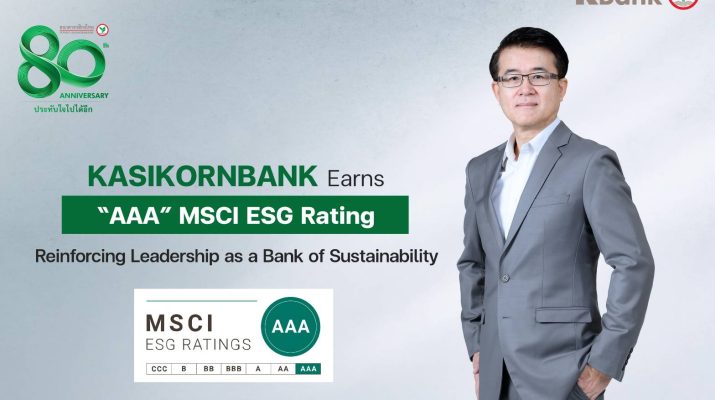 นายจงรัก รัตนเพียร ผู้จัดการใหญ่ ธนาคารกสิกรไทย เปิดเผยว่า ในปี 2568 ธนาคารได้รับผลการประเมินจากหน่วยงานที่มีความเชี่ยวชาญและความน่าเชื่อถือในด้านดัชนี ESG ในระดับโลก โดยได้ MSCI ESG Rating ในระดับ AAA ซึ่งเป็นระดับสูงสุด จาก MSCI ESG Research ตอกย้ำการเป็นธนาคารแห่งความยั่งยืนที่มีการดำเนินงานตามมาตรฐานระดับสากล