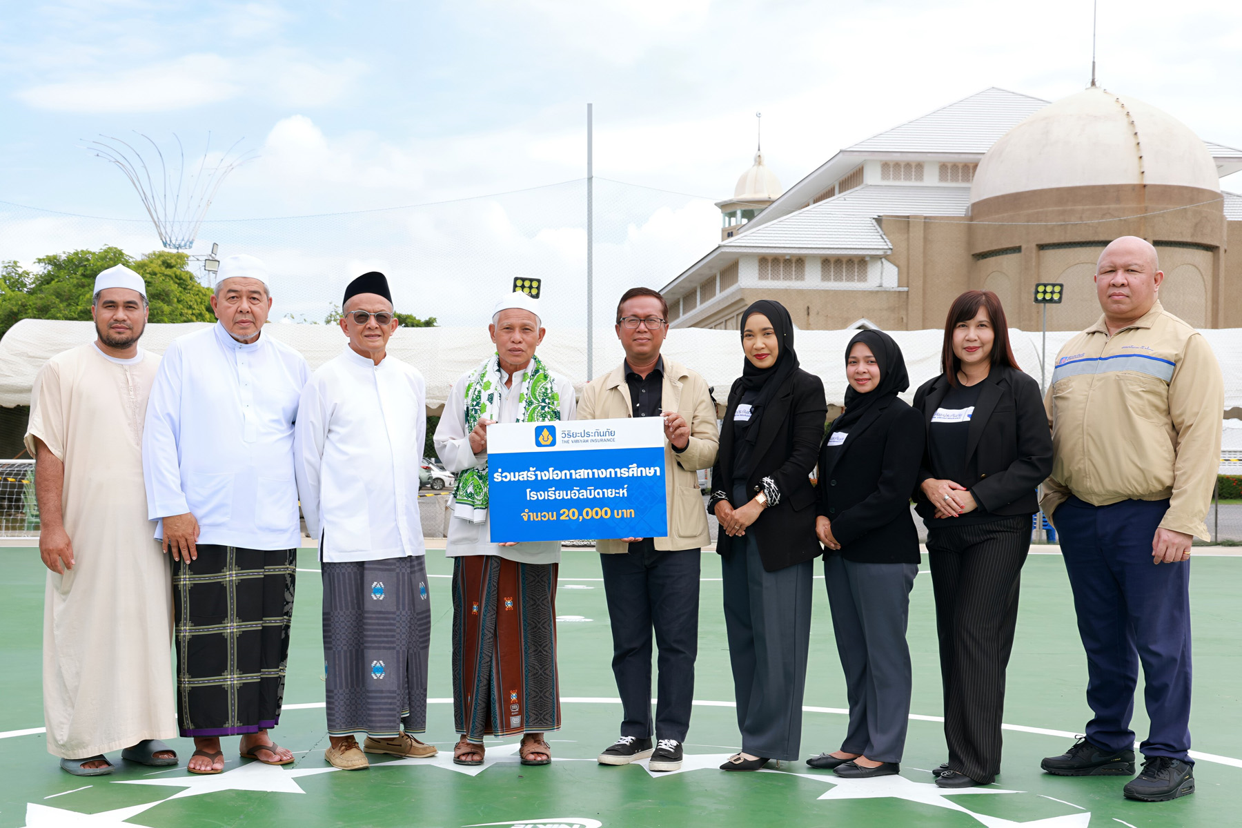 นายรังสันต์ แสงวิมาน อิหม่ามประจำมัสยิดดารุนนาอีม และครูใหญ่ประจำโรงเรียนอัลบิดายะห์ รับมอบเงินสนับสนุนจำนวน 20,000 บาท พร้อมน้ำดื่ม จาก บริษัท วิริยะประกันภัย จำกัด (มหาชน) โดยมี นางสาวกาญจนา เอี่ยมโสภา ผู้จัดการโครงการประกันภัยตามหลักศาสนาอิสลาม (ตะกาฟุล) เป็นผู้แทนมอบ เพื่อสนับสนุนการปรับปรุงซ่อมแซมสนามกีฬาของโรงเรียนอัลบิดายะห์ รวมถึงกิจกรรมการแข่งขันฟุตซอลการกุศล “AL-BIDAYAH CUP” ภายในงาน “รวมน้ำใจสู่อัลบิดายะห์ ครั้งที่ 15” ด้วยตระหนักถึงความสำคัญของการสร้างเสริมสุขภาพพลานามัยภายในโรงเรียน โดยมุ่งหวังให้เด็กและเยาวชนมีสุขภาพกายใจที่แข็งแรง พร้อมทั้งมีทักษะในการปฏิสัมพันธ์ร่วมกับผู้อื่น เพื่อเป็นพื้นฐานสำคัญในการเติบโตเป็นพลเมืองที่มีคุณภาพของสังคม ณ โรงเรียนอัลบิดายะห์ แขวงทุ่งครุ เขตทุ่งครุ กรุงเทพฯ