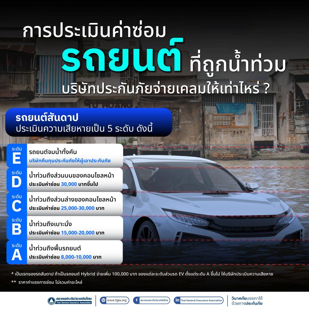 -ระดับ A น้ำท่วมถึงพื้นรถยนต์ ประเมินค่าซ่อม 8,000-10,000 บาท