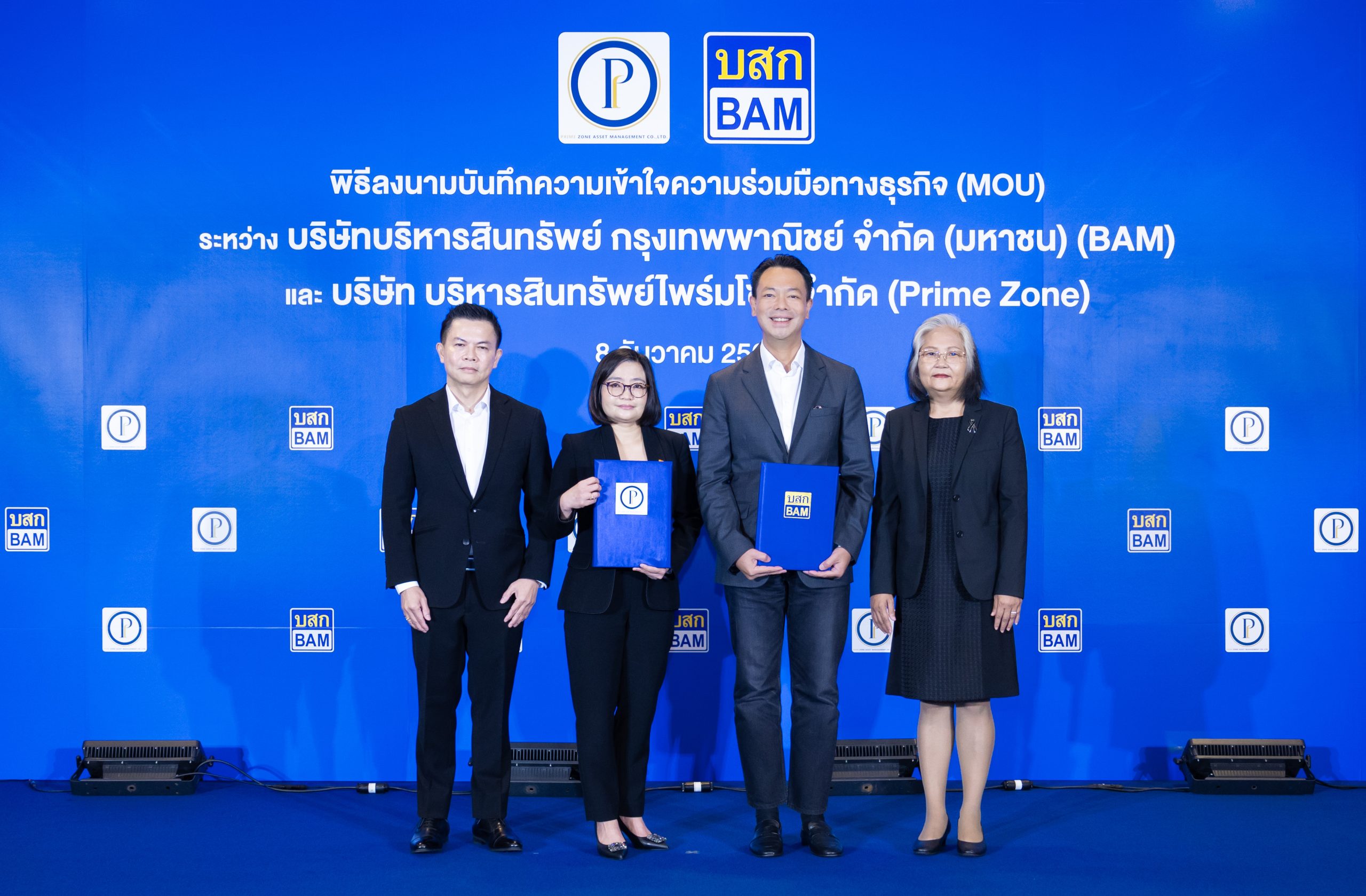บริษัท บริหารสินทรัพย์ กรุงเทพพาณิชย์ จำกัด (มหาชน) หรือ BAM ได้ลงนามบันทึกข้อตกลงความร่วมมือทางธุรกิจ (MOU) กับ บริษัท บริหารสินทรัพย์ไพร์มโซน จำกัด (Prime Zone หรือ PZ) เพื่อร่วมมือทางธุรกิจในด้านบริหารจัดการสินเชื่อด้อยคุณภาพ (NPL) และทรัพย์สินรอการขาย (NPA) ที่มุ่งเน้นการสร้างผลประโยชน์สูงสุดทางด้านธุรกิจร่วมกัน
