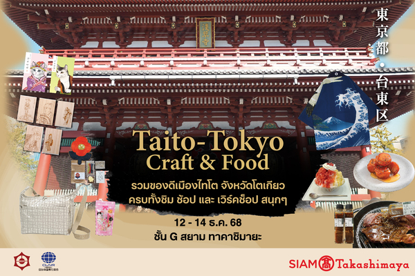 สยาม ทาคาชิมายะ ห้างสรรพสินค้าญี่ปุ่นขนานแท้แห่งเดียวในประเทศไทย ณ ไอคอนสยาม ร่วมกับรัฐบาลเขตไทโต จัดงาน “Taito – Tokyo Craft & Food ” ยกอารยธรรม ความประณีต และรสชาติดั้งเดิมจาก เขตไทโต (Taito Ku) ใจกลางกรุงโตเกียว ซึ่งเป็นที่ตั้งของแหล่งท่องเที่ยวทางประวัติศาสตร์และวัฒนธรรมสำคัญอย่างวัดเซนโซจิ มาให้คนไทยได้สัมผัสและเลือกซื้ออย่างใกล้ชิด ร่วมเดินทางสู่ดินแดนแห่งความประณีตดั้งเดิมของญี่ปุ่น ตั้งแต่วันที่ 12 – 14 ธันวาคม 2568 ณ ชั้น G สยาม ทาคาชิมายะ ณ ไอคอนสยาม พบกับ 15 แบรนด์สินค้าคุณภาพและอาหารยอดนิยมจากผู้ประกอบการเขตไทโต ที่สะท้อนจิตวิญญาณแห่งช่างฝีมือชาวญี่ปุ่นได้อย่างสมบูรณ์