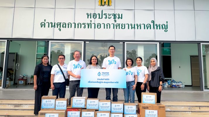 นอกจากนี้ กรุงเทพประกันชีวิตยังได้มอบสิ่งของจำเป็น อาหารพร้อมทาน และอุปกรณ์ทำความสะอาดให้กับสำนักงาน คปภ. ภาค 9 – สงขลา เพื่อกระจายไปยังผู้ที่เดือดร้อนในพื้นที่ พร้อมทั้งลงพื้นที่มอบถุงยังชีพบรรเทาทุกข์และให้กำลังใจแก่ลูกค้าในพื้นที่อำเภอหาดใหญ่อีกด้วย