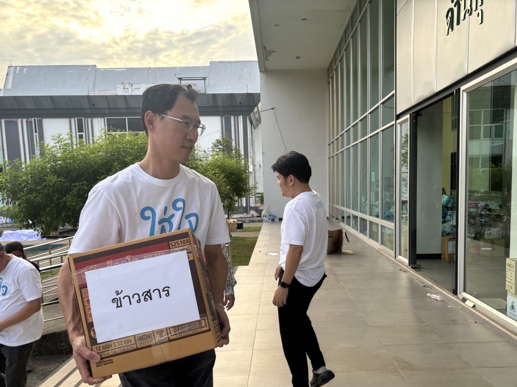ก่อนการลงพื้นที่ พนักงานของกรุงเทพประกันชีวิตจากหลากหลายฝ่ายได้ร่วมแรงร่วมใจด้วยจิตอาสา ในการบรรจุสิ่งของจำเป็นลงในถุงยังชีพ ทั้งข้าวสาร อาหารแห้ง อุปกรณ์ยังชีพ อุปกรณ์ทำความสะอาด และสิ่งของจำเป็น การร่วมมือกันด้วยความตั้งใจของทุกคนสะท้อนถึงพลังแห่งน้ำใจที่กรุงเทพประกันชีวิตมุ่งส่งต่อให้ถึงมือผู้ประสบภัยอย่างรวดเร็วและทั่วถึงที่สุด