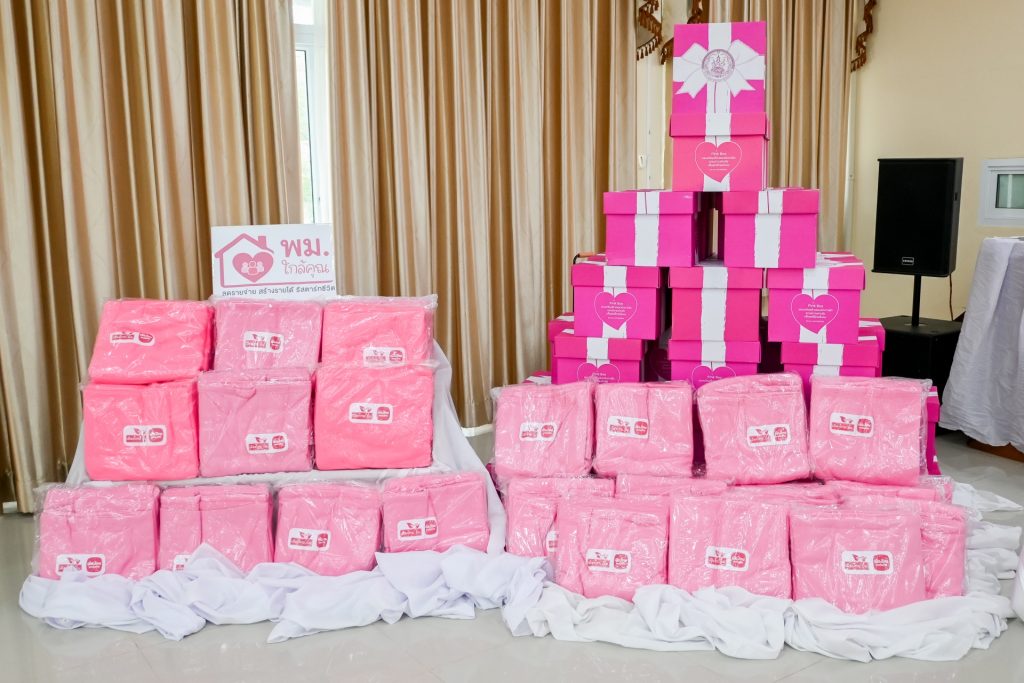 สำหรับกล่อง “Pink Box” เป็นกิจกรรมเพื่อสังคมที่เมืองไทยประกันชีวิตและมูลนิธิเมืองไทยยิ้มดำเนินการเพื่อสานต่อภารกิจของกรมกิจการสตรีและสถาบันครอบครัว ในการเสริมสร้างความเสมอภาคและความเข้มแข็งให้ครอบครัวไทย ภายในบรรจุของใช้จำเป็นและของใช้ด้านสุขอนามัย เพื่อส่งต่อกำลังใจแก่สตรีกลุ่มเปราะบางและครอบครัวที่ขาดแคลน
