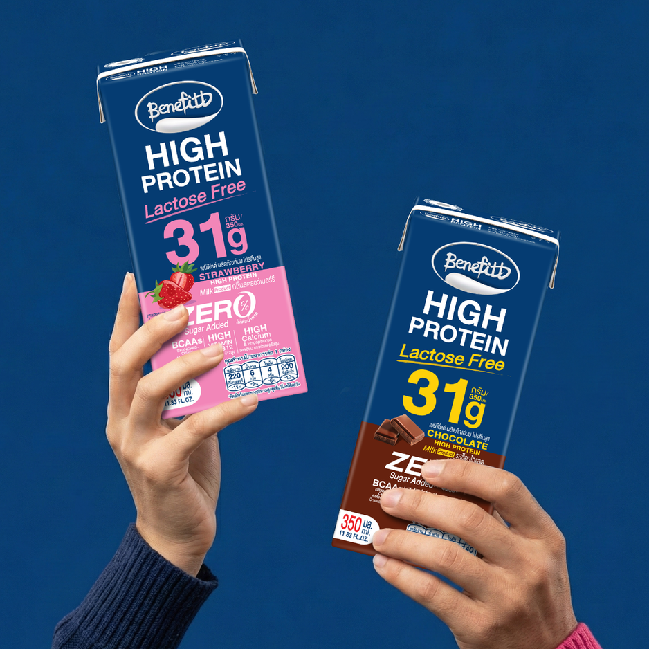 นมยูเอชทีโปรตีนสูงเบเนฟิตต์ได้รับการพัฒนาขึ้นเพื่อผู้บริโภคที่ใส่ใจสุขภาพ และกำลังมองหาทางเลือกเครื่องดื่มที่ให้โปรตีนสูง สะดวก พร้อมดื่มโดยไม่ต้องชงและไม่ต้องแช่เย็นในกล่องขนาด 350 มิลลิลิตรให้โปรตีนสูงถึง 31 กรัม อีกทั้งยังปราศจากแลคโตส ไม่เติมน้ำตาลทราย ดื่มง่าย ไม่ข้นหนืด เหมาะทั้งสำหรับผู้บริโภคที่ต้องการควบคุมน้ำหนัก มื้อเร่งด่วนแต่ยังได้รับสารอาหารครบของพนักงานออฟฟิศ กลุ่มคนรักสุขภาพที่ต้องการเสริมโปรตีนให้เพียงพอในแต่ละวัน รวมถึงกลุ่มผู้บริโภคที่ชื่นชอบการออกกำลังกาย และนักกีฬาที่ต้องการเครื่องดื่มเสริมโปรตีนเพื่อสร้างกล้ามเนื้อ
