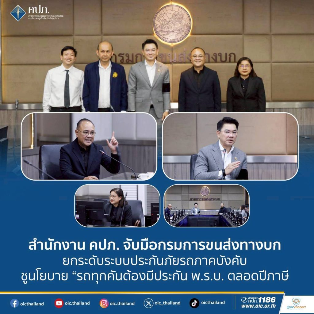 เมื่อวันที่ 4 กุมภาพันธ์ 2569 นายชูฉัตร ประมูลผล เลขาธิการคณะกรรมการกำกับและส่งเสริมการประกอบธุรกิจประกันภัย (เลขาธิการ คปภ.) ได้ประชุมหารือร่วมกับ นายสรพงษ์ ไพฑูรย์พงษ์ อธิบดีกรมการขนส่งทางบก ณ ห้องประชุมกรมการขนส่งทางบก เพื่อยกระดับระบบประกันภัยรถภาคบังคับ (พ.ร.บ.) ให้เป็นกลไกหลักในการคุ้มครองผู้ประสบภัยจากรถอย่างมีประสิทธิภาพ และลดปัญหารถขาดความคุ้มครองในระหว่างรอบปีภาษี