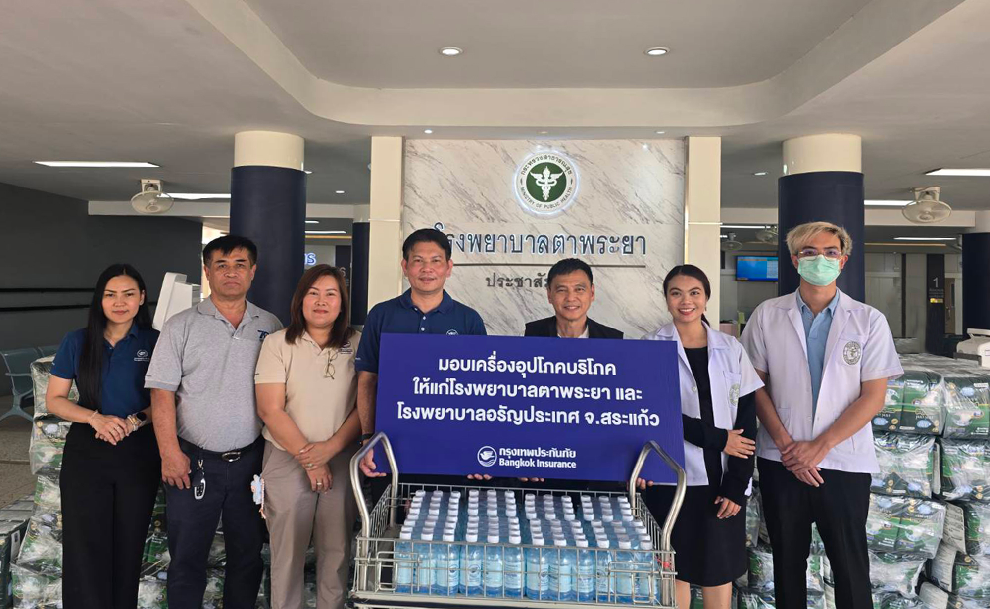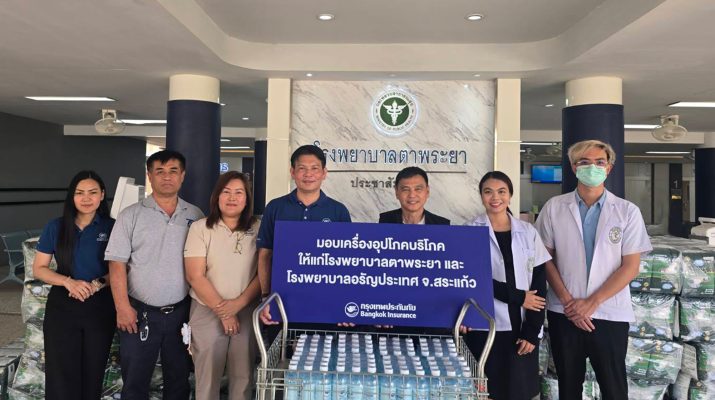 บริษัท กรุงเทพประกันภัย จำกัด (มหาชน) ร่วมกับมูลนิธิกรุงเทพประกันภัย สนับสนุนการดำเนินงานด้านสาธารณสุขในพื้นที่ต่างๆ อย่างต่อเนื่อง โดยนายสถาพร ฤกษ์ดี ผู้จัดการภาคตะวันออก ธุรกิจสาขา เป็นผู้แทนบริษัทฯ มอบเครื่องอุปโภคบริโภคที่จำเป็น อาทิ น้ำดื่ม ผ้าอ้อมผู้ใหญ่ ให้แก่โรงพยาบาลอรัญประเทศ โดยมีนายเชิดชัย ศิริมหา รองผู้อำนวยการโรงพยาบาลอรัญประเทศ เป็นผู้แทนรับมอบ ณ โรงพยาบาลอรัญประเทศ พร้อมกันนี้ บริษัทฯ ได้มอบเครื่องอุปโภคบริโภคให้แก่โรงพยาบาลตาพระยา โดยมีนายนพดล คำแสน รองผู้อำนวยการโรงพยาบาลตาพระยา เป็นผู้แทนรับมอบ ณ โรงพยาบาลตาพระยา จังหวัดสระแก้ว เมื่อวันที่ 6 กุมภาพันธ์ 2569